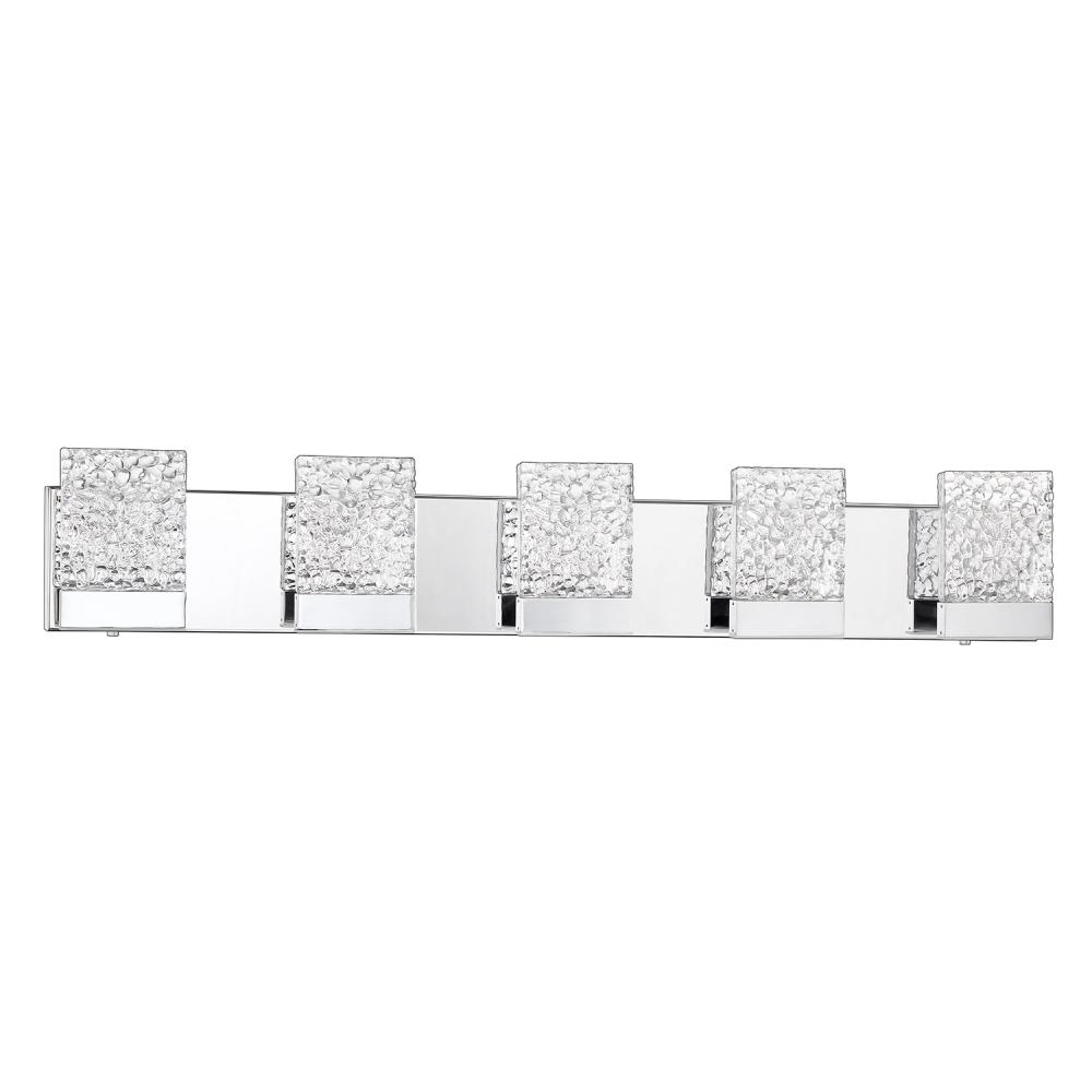 ASTRON 5-Light LED Bath & Vanity Light in a Chrome finish featuring Icelandic Rock Glass