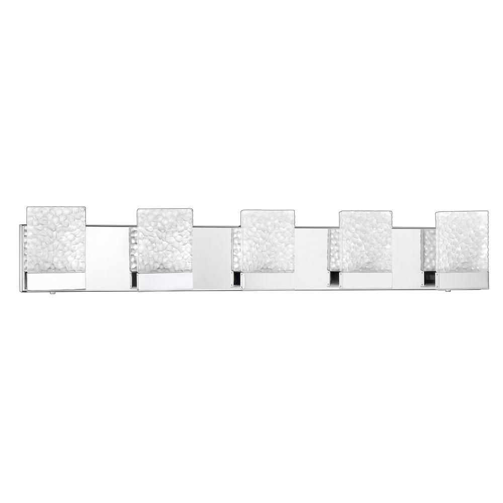 ASTRON 5-Light LED Bath & Vanity Light in a Chrome finish featuring Frosted Icelandic Rock Glass