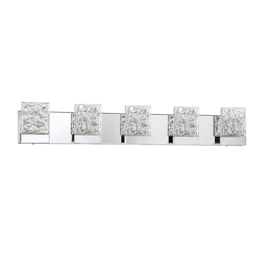 ASTRON 5-Light LED Bath & Vanity Light in a Chrome finish featuring Fossilized Ice Glass