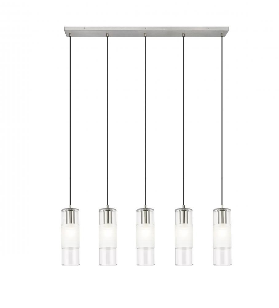 Sleek and simple lines define the Alton pendant. This deceptively substantial design pairs a steel housing with artesian glass and a cloth-covered black braided cord for a modern touch. Available in singles or multiple configurations in these beautiful fin