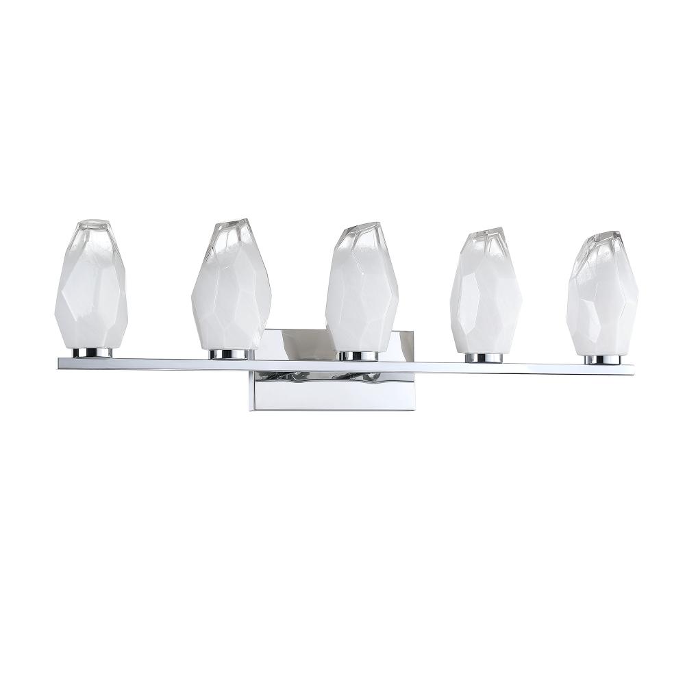 SOREN 5-Light G9 Vanity Light in a Chrome finish featuring Clear Tipped Sculpted Ice Glass shade
