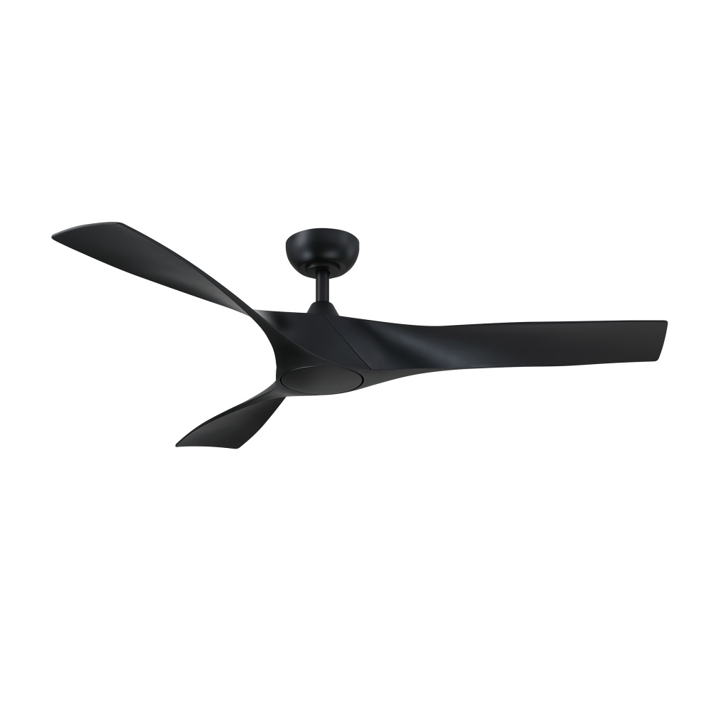 GENAR 52 in. 3 Blade DC Motor Ceiling Fan with Adjustable Color LED Light Kit in a Black finish with matching blades. The included Full-function Remote Control provides 6 Speeds, CCT (LED Color) Adjustability, LED Dimmer, Reverse Function, 1/4/8 Hour Timer to shut Fan off Automatically, and a Variable Wind feature which modulates Fan Speed to simulate a Natural Breeze.