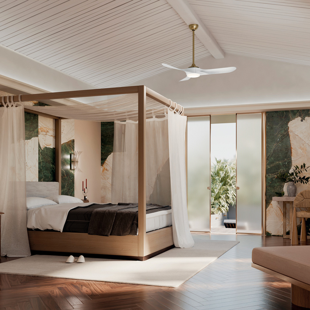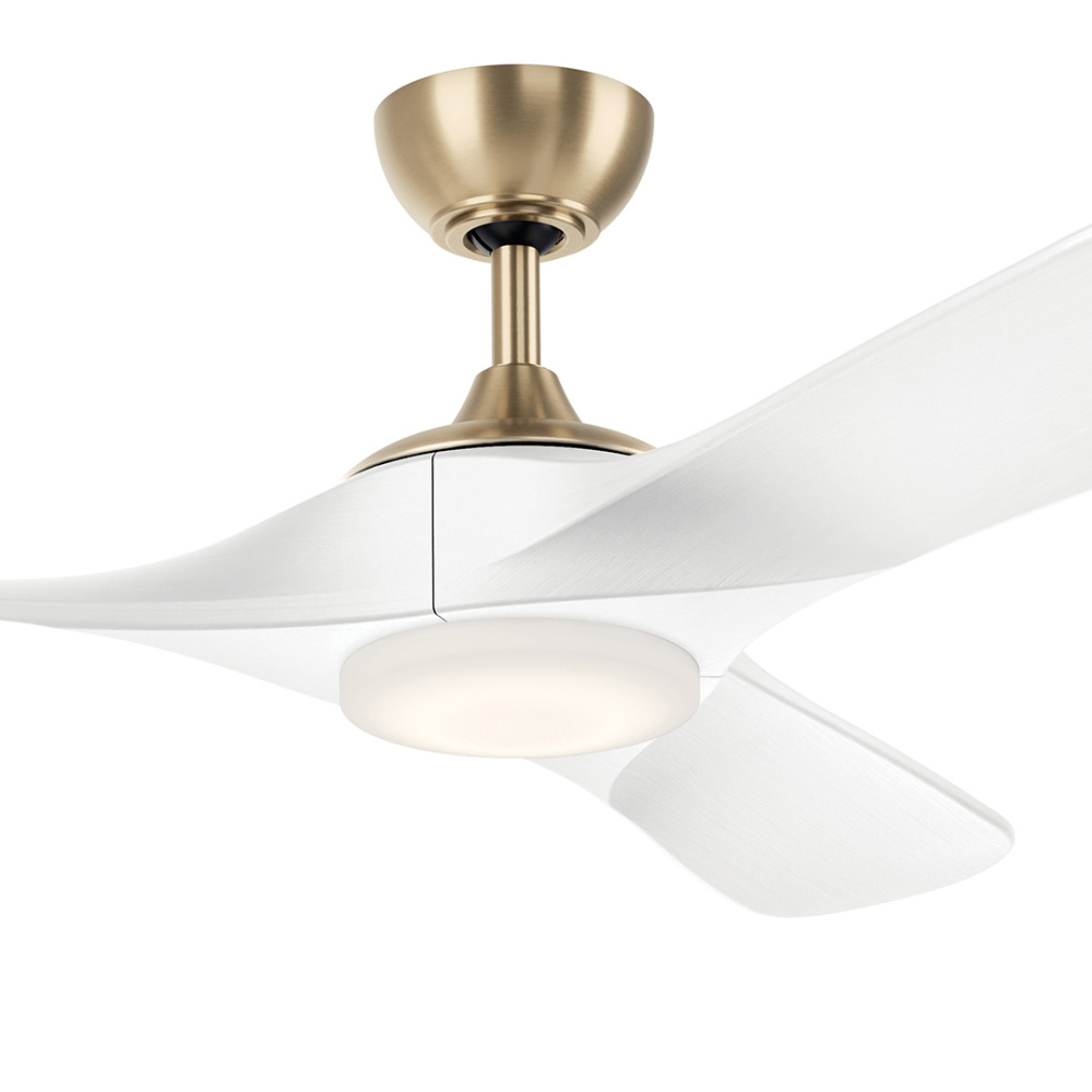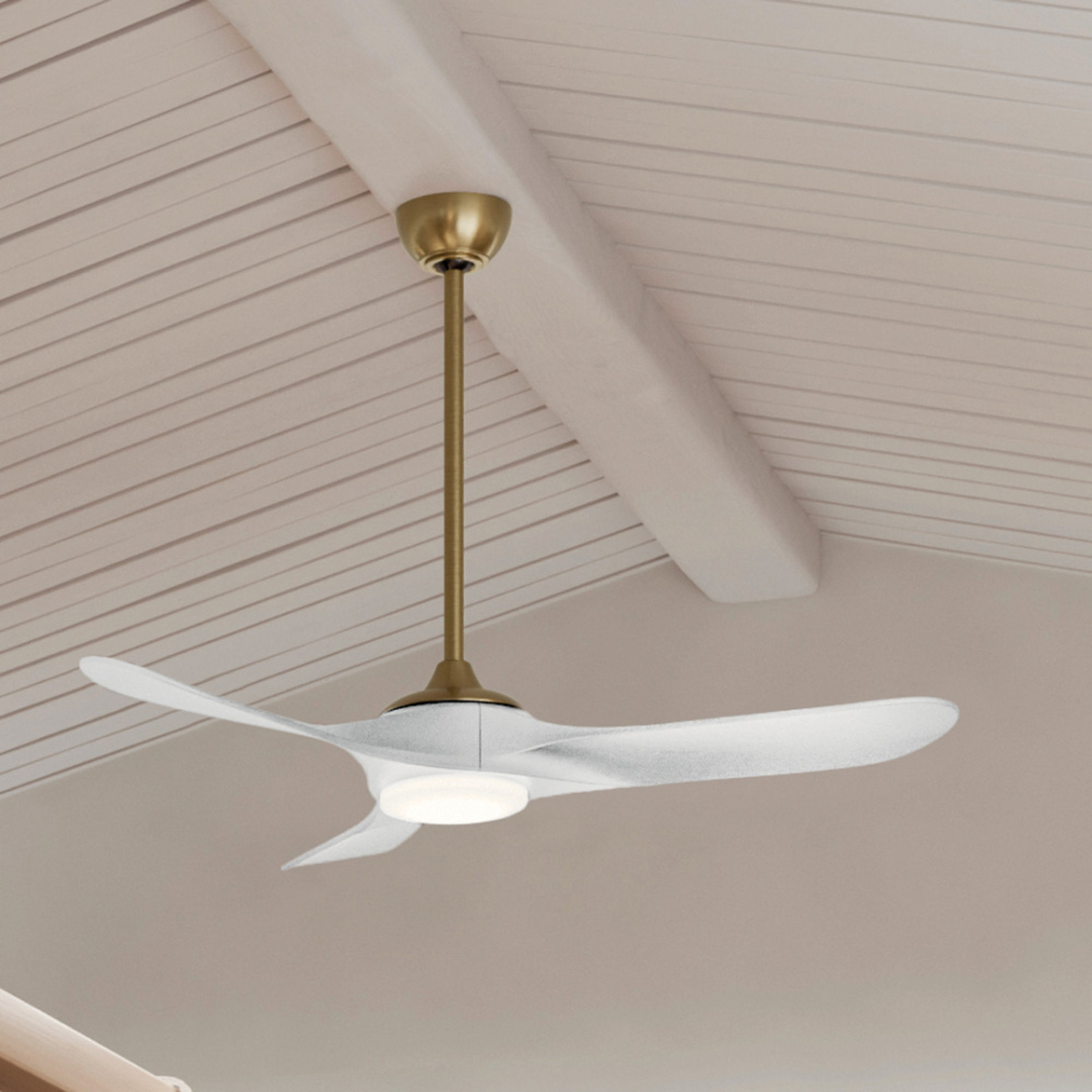 Featuring solid wood blades, soft curves and sculptural form, the Mylo 52" ceiling fan easily coordinates with an array of modern style environments. Its size, location rating, and CFMs create a desirable cooling effect in most indoor and outdoor spaces. As versatile as it is functional, Mylo's included light cap provides the option to utilize the fan with or without the light source while its three real wood carved blades enhance its overall aesthetics. Like patterns in nature, the Mylo solid wood blades offer a unique and distinct wood grain textures that can vary from fan-to-fan – sculptured into a true piece of artwork in your space.
