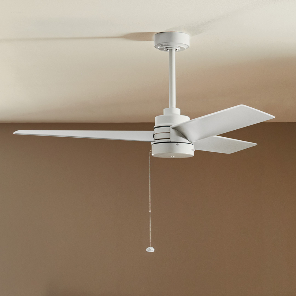 Make a statement without saying a word with the simple yet impactful design of the 52-inch Spyn Lite ceiling fan. Its clean, straight blades and minimal detailing allow it to easily coordinate with most small-sized rooms, 100-150 sq ft. While its subtle blade design detail envelopes and exposes a hint of the motor for a modern industrial effect that complements modern transitional spaces. Complete the look by adding a light source with the Kichler Universal LED Light Kit (not included).