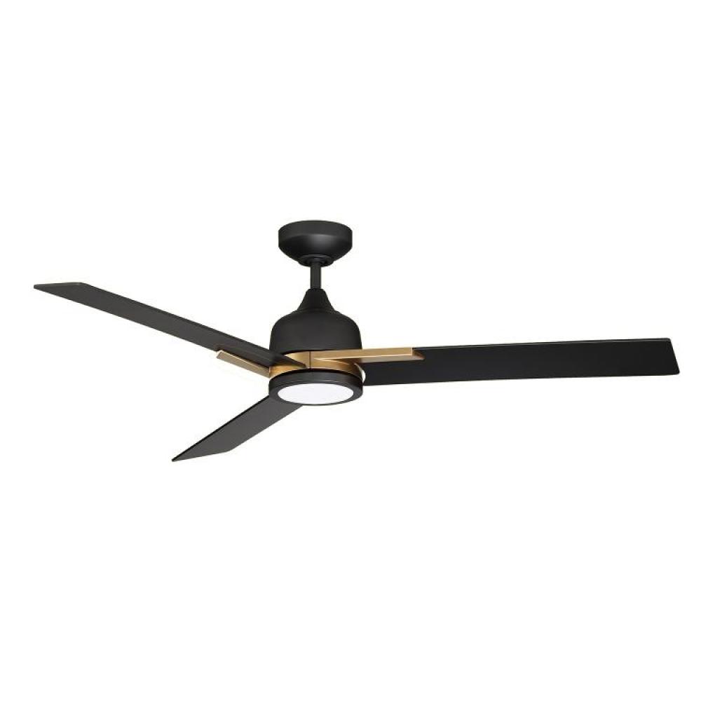TRITON 52 in. 3 blade LED Ceiling Fan in a Matte Black & Oilcan Brass finish with Black blades
