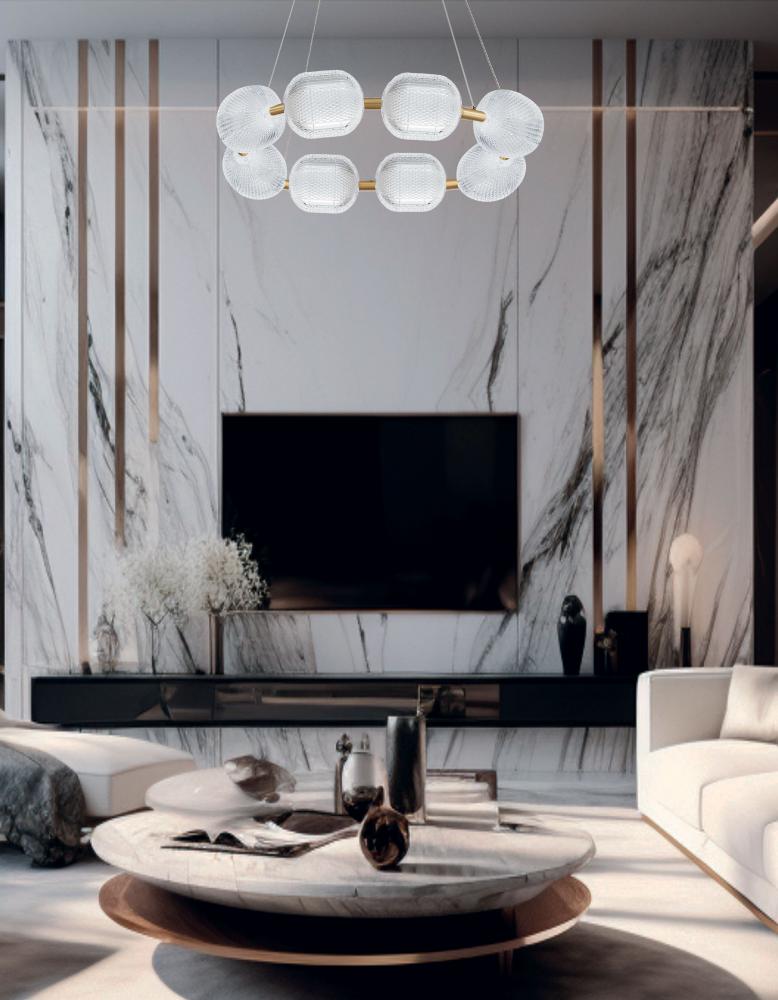 56W Chandelier, AGB w/ CLR Pattern Acrylic