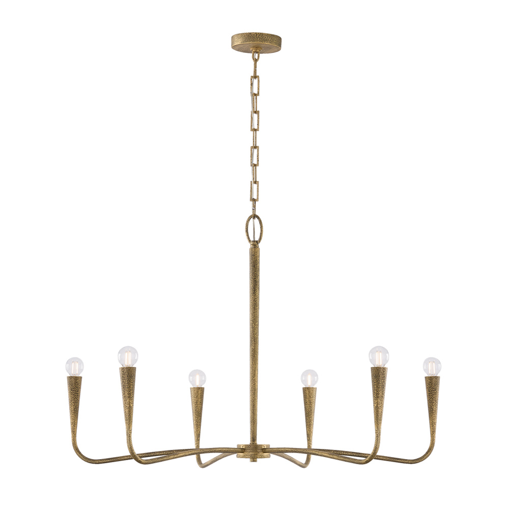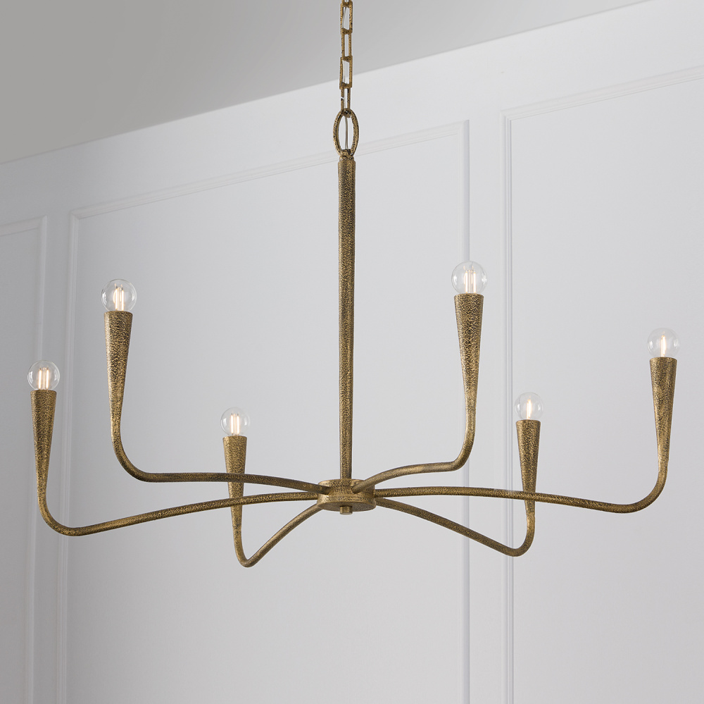 DETAILS: Layers of hand-painted texture bring stunning dimension to the Artisan Gold finish, while the slightly sunken sockets and designer chain create elevated style in the curved, seamless form.