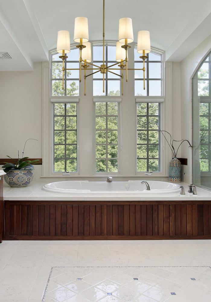 A tasteful addition to a traditional dining room, the Emily chandelier creates an inviting ambiance with its five off-white cloth shades. Treated to a gleaming rubbed brass finish, this metal chandelier flaunts a sleek silhouette that enhances a room with classic elegance.