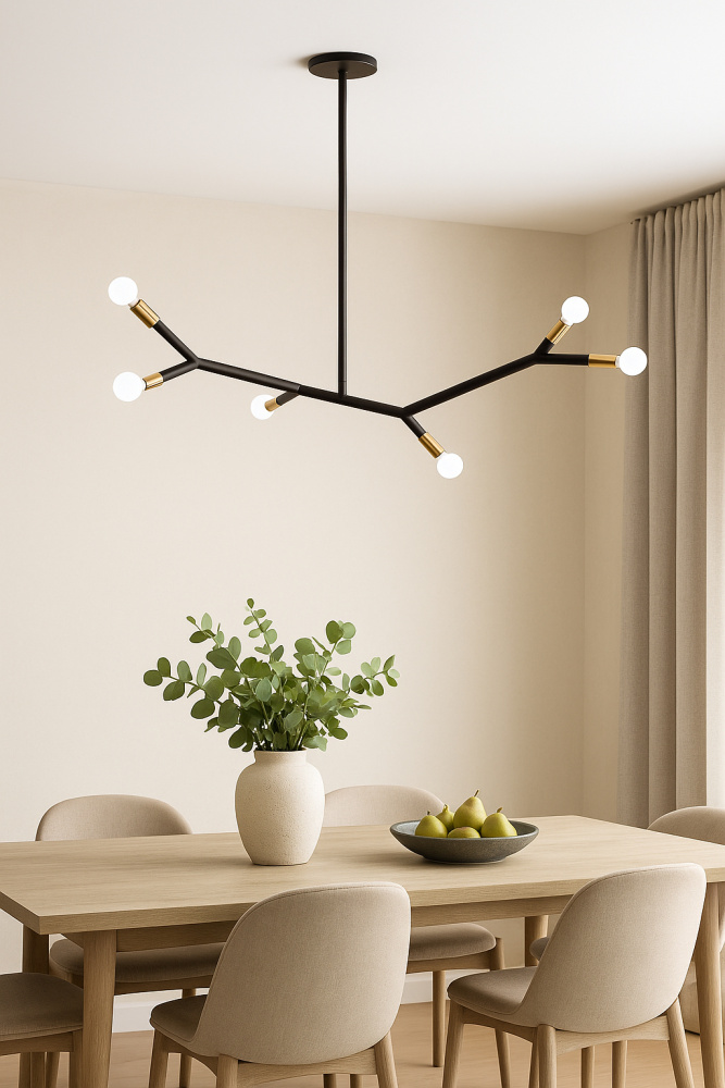 6 Light Horizontal Pendant in Matte Black and Aged Brass