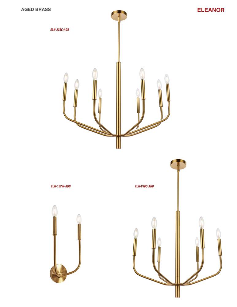 Dainolite ELN-388C-AGB-790 - 8LT Incandescent Chandelier, AGB w/ WH Shade