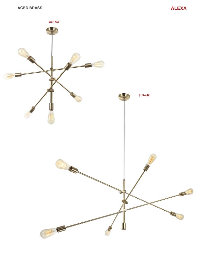 Alexa will appeal to artistic sensibilities, and those with an eye for contemporary style. Its asymmetrical design cleverly delivers light in all directions, with a sleek and linear appeal that will blend into any modern home. The metal body is offered in your choice of aged brass, for a warmer effect, and matte black, for a subtler look. Either option will add an instant focal point – and conversation starter – to any room. The Alexa family of lighting will work well with clean lines and minimalist décor, adding a pop of instant interest to neutrals and spacious areas.