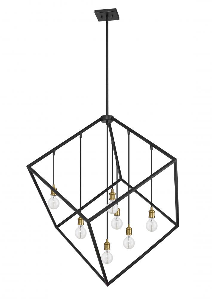 This sensational two-tone seven-light pendant will light up your home. It features a warm bronze and olde brass finish with the lights inside a single large cube-shaped shade for a dynamic look that steals the spotlight in any space. Its a majestic light that will transform any dining room, hallway, bedroom, or kitchen.