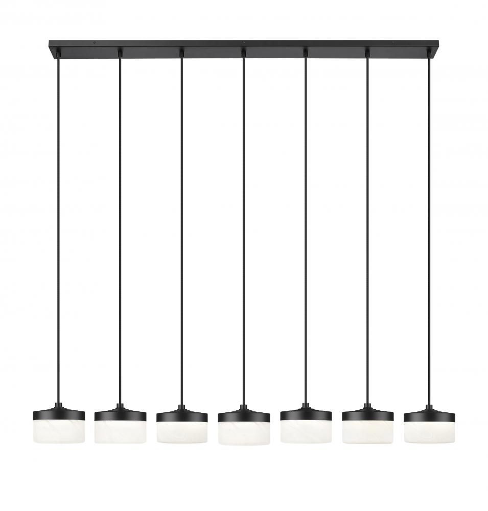 Stretched in a long, balanced line, this matte black 7-light linear LED chandelier spaces its clouded shades evenly so light reaches every seat along an extended island or table. The design feels substantial, while the slim cords and frosted glass keep the look airy and deliver strong illumination for cooking, working, and gathering. In open-concept layouts, it serves as a visual divider that gently defines the dining or prep zone while still allowing the rest of the space to flow around it.