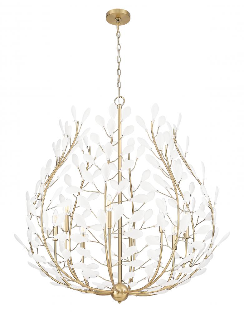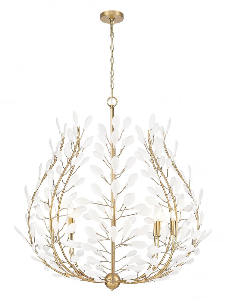 Open metalwork is always an artisan effect, and this five-light chandelier merges ambient illumination with an artisan botanical vibe. This fixture features modern gold finish steel construction emulating vines, with sparkling crystals adding a bud-like look to complete an organic feel. Choose this dimmable light to inspire in living rooms, dining spaces, and foyers.
