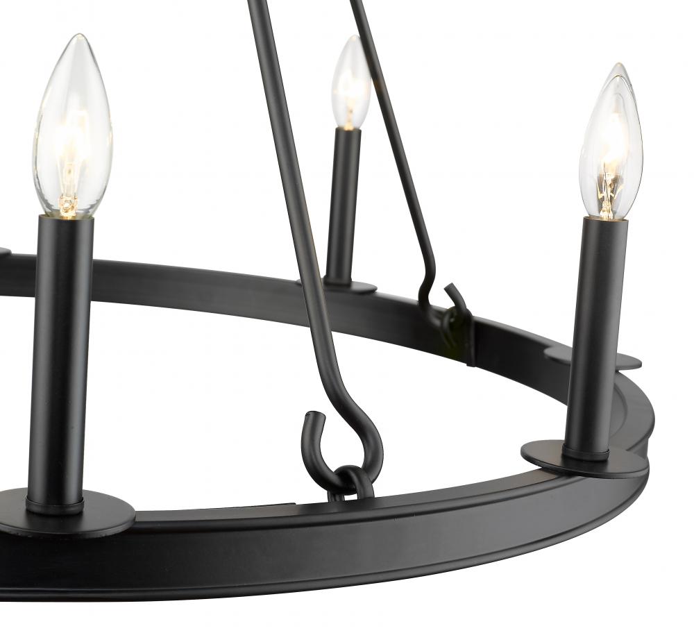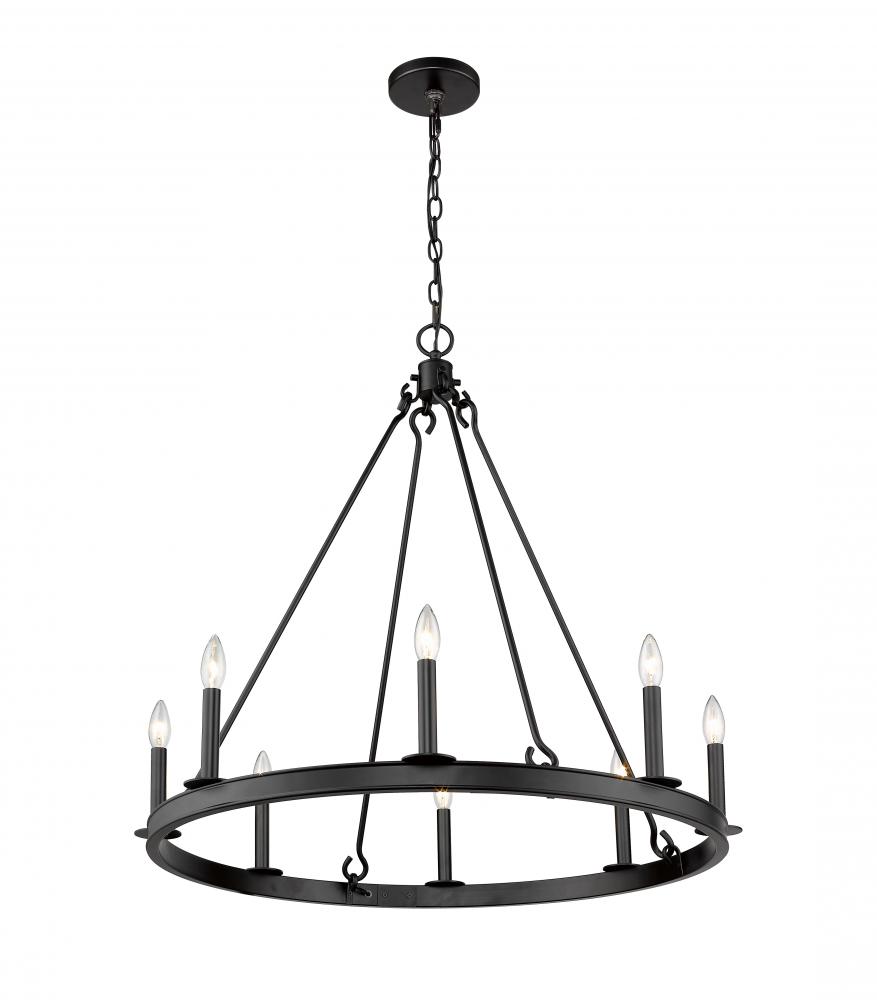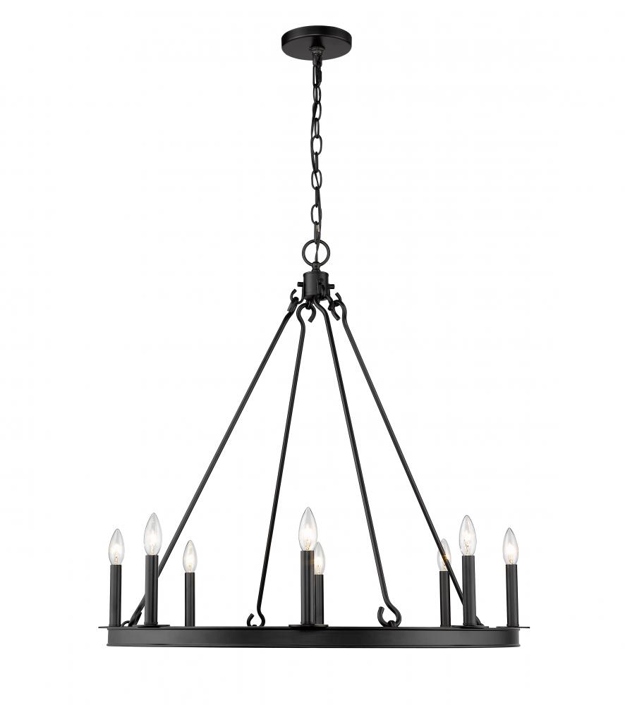 Light up your home both stylishly and literally with the addition of this lovely eight-light chandelier. Its crafted in a handsome matte black finish and features the candle-inspired lights in a charming round design. The chandelier is perfectly suited for the breakfast nook, foyer, kitchen, or entertainment room.