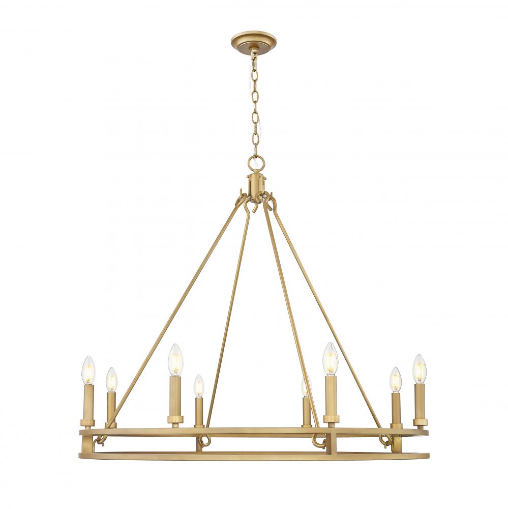 For those who love a sculptural centerpiece that radiates both strength and softness, this eight-light chandelier delivers. Finished in signature brass, its generous scale remains airy thanks to its open arms and minimalist silhouette. It?s a versatile statement piece that enhances everything from urban interiors to breezy beachfront homes.