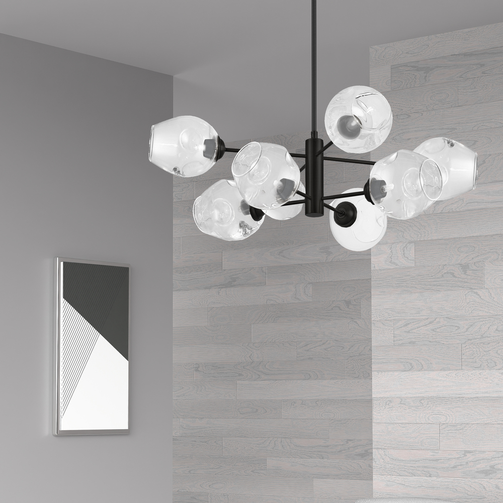 The eye-catching contrast of glass globes and sleek straight lines form the basis of the ABII family of lighting fixtures. It's a versatile and adaptable design with options ranging from a single sconce to a large pendant light in a look that can work with virtually any room or design scheme. The metal base and arms create a pattern to showcase the reflective effects of the glass globes. Colorway options include complementary finishes from warm to stylishly dramatic. Halogen lights add a warm glow. From ultra-modern minimalism to mid-century and even more traditional décors, the ABII family of lighting’s transitional design is both luxurious and timeless in its appeal.