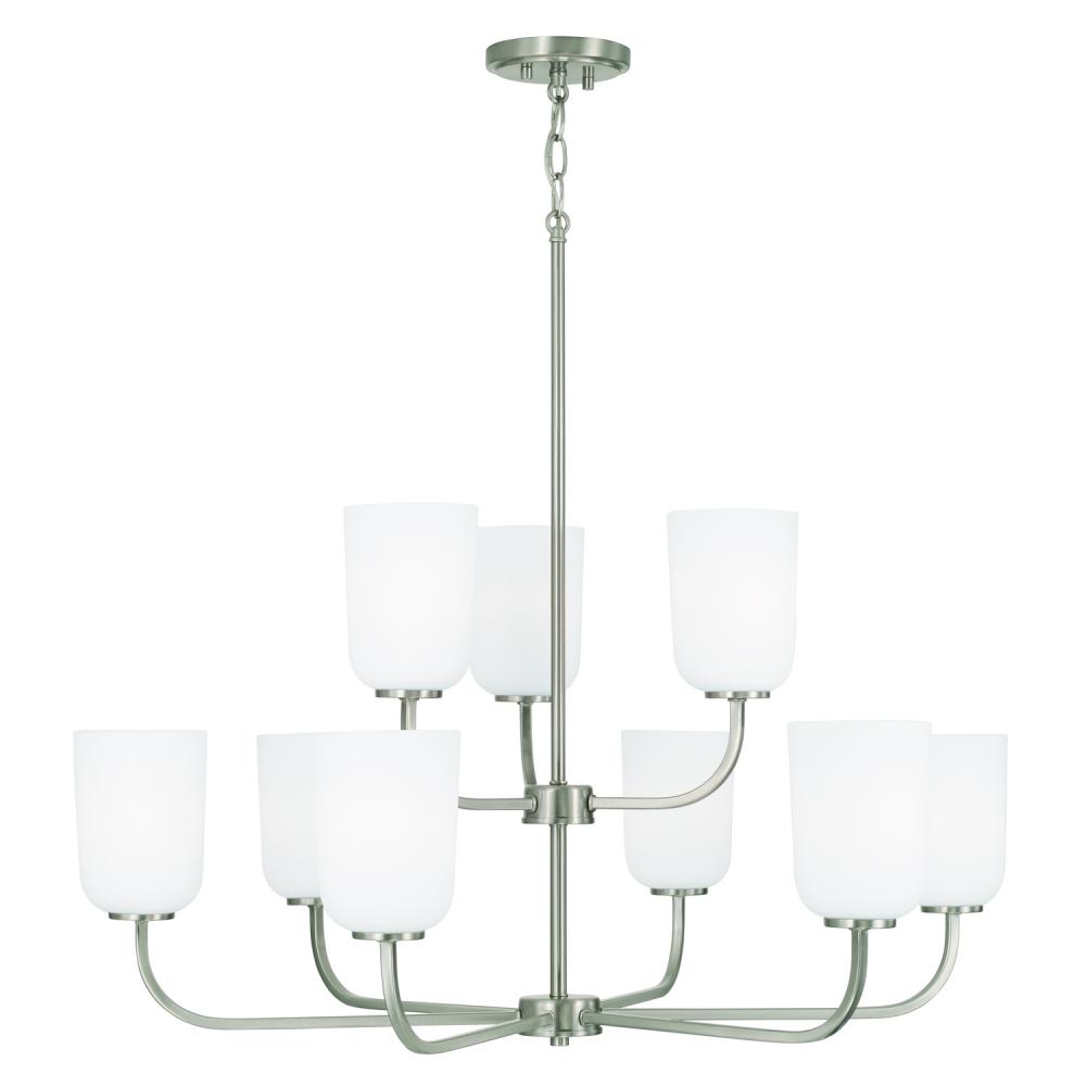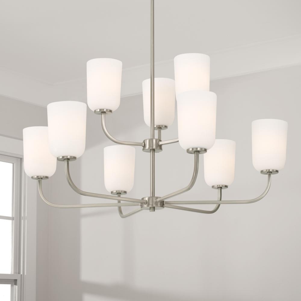 BULBS: Designed to be dimmable and LED/CFL/Incandescent bulb compatible, this fixture uses 9 - 100 Watt (max) E26 Medium base bulbs (not included). It's shown here with an A15 lamp.