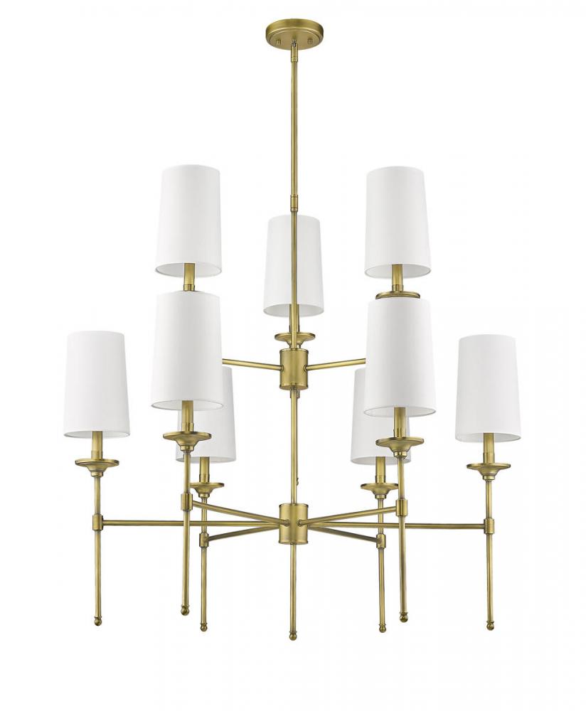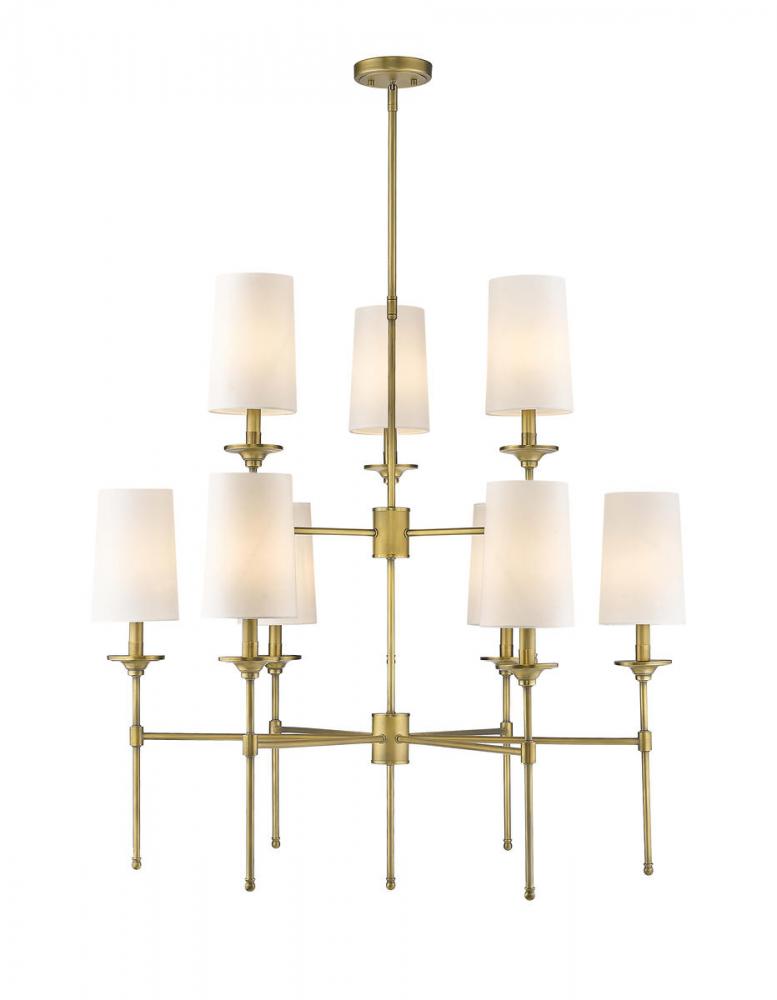 Complete a traditional dining room aesthetic with a classically crafted chandelier that exudes refined elegance. This six-light metal chandelier from the Emily collection elevates a room with its sleek metal frame in a gleaming rubbed brass finish. Six tasteful, off-white cloth shades create a soft, ambient glow for a mood-lifting effect.