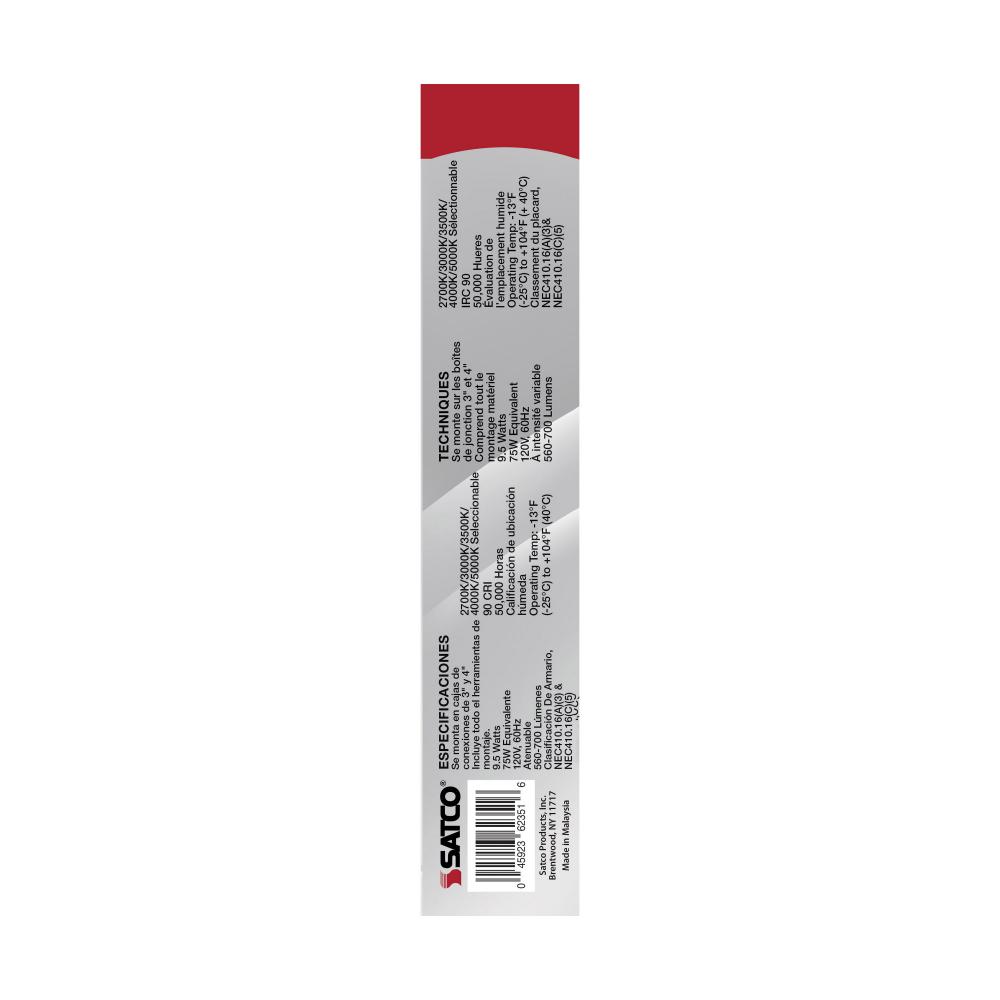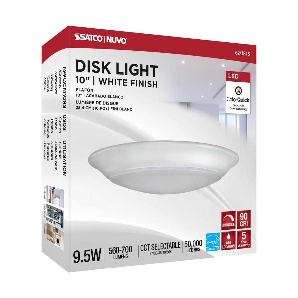 Introducing SATCO NUVO 62-1815, a 10-inch customizable lighting solution with CCT selectable options from 2700K to 5000K. This 9.5-watt fixture comes in a white finish and features a high CRI of 93 for exceptional color accuracy. It offers 2.5kV surge prot