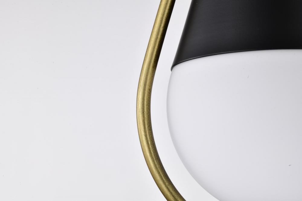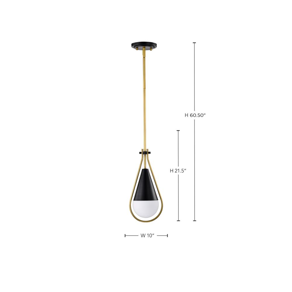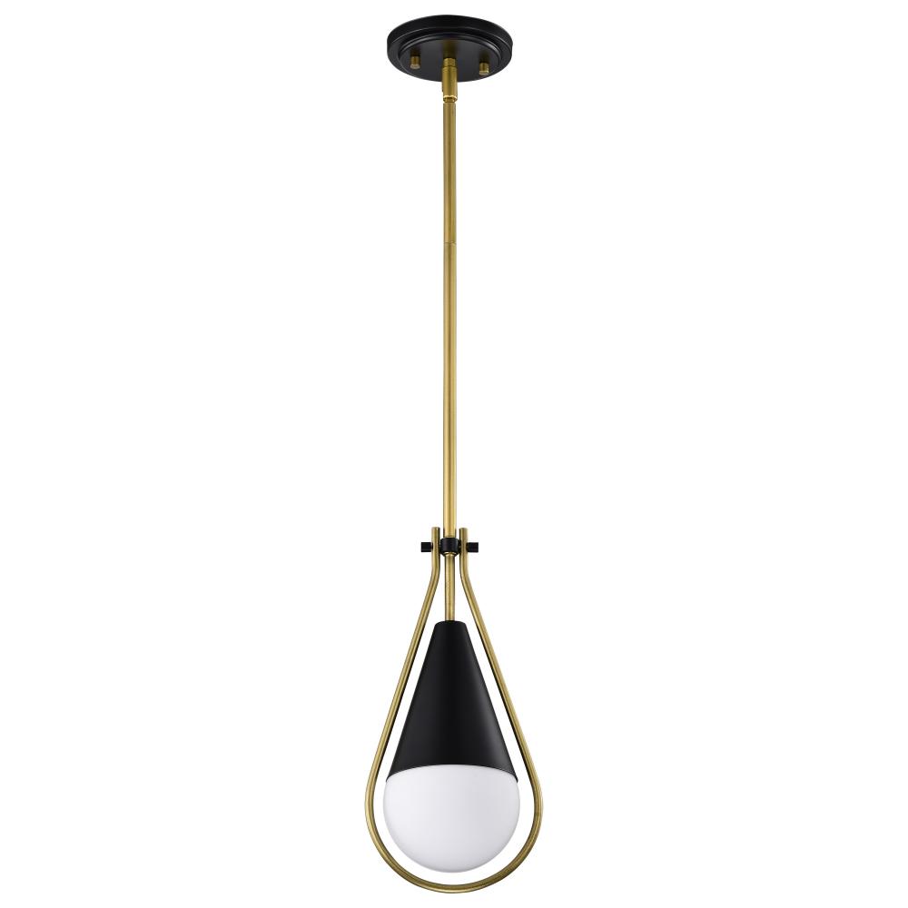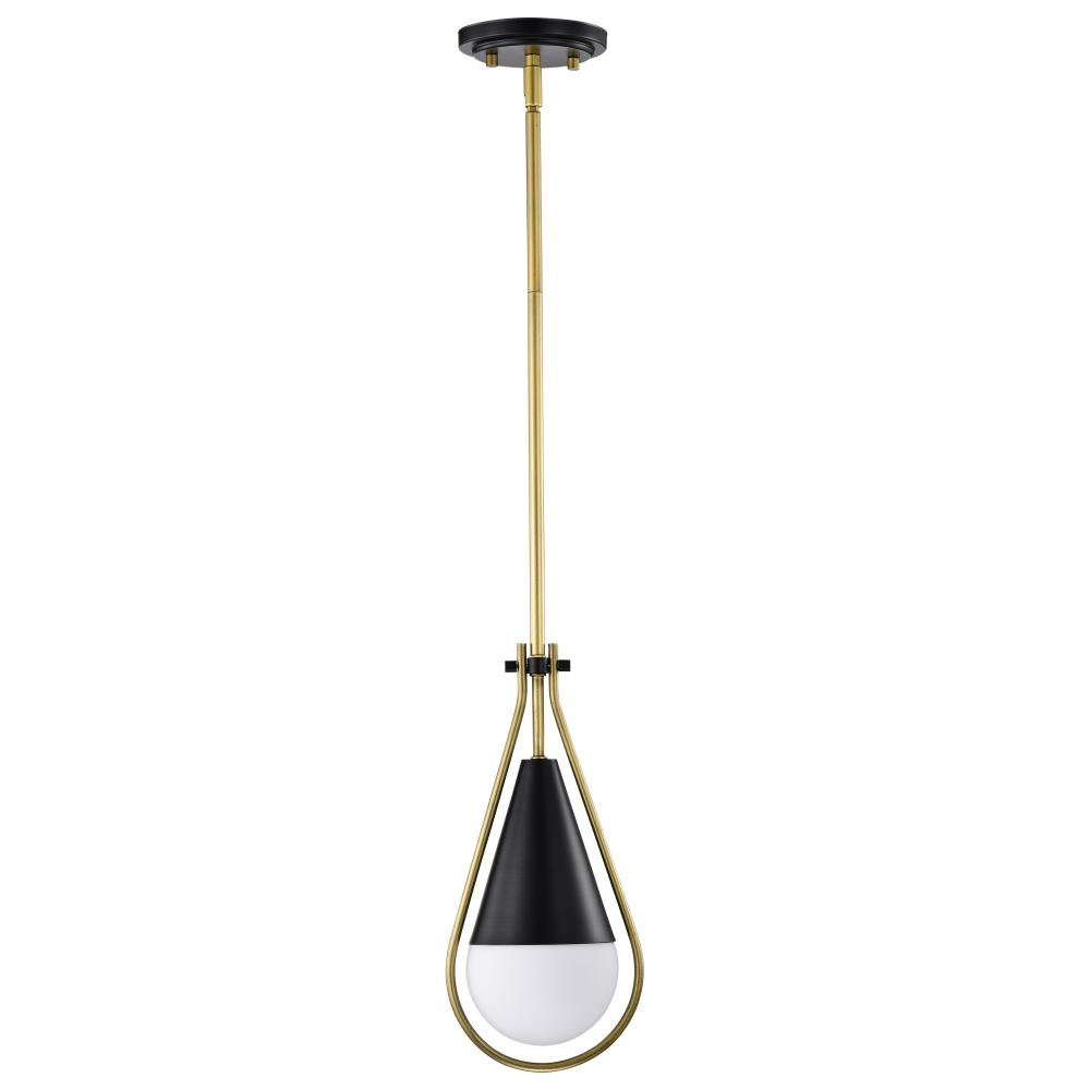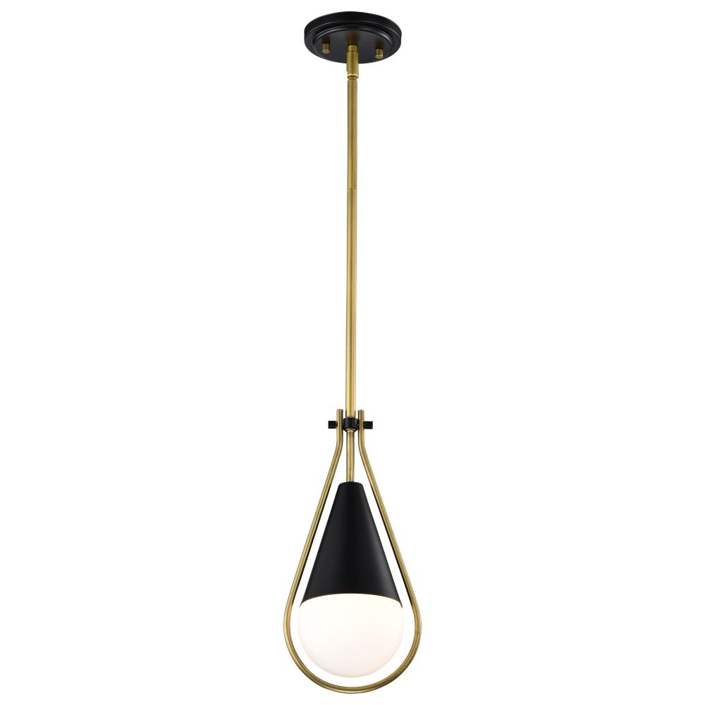 Admiral 1 Light Pendant; 10 Inches; Matte Black and Natural Brass Finish; White Opal Glass