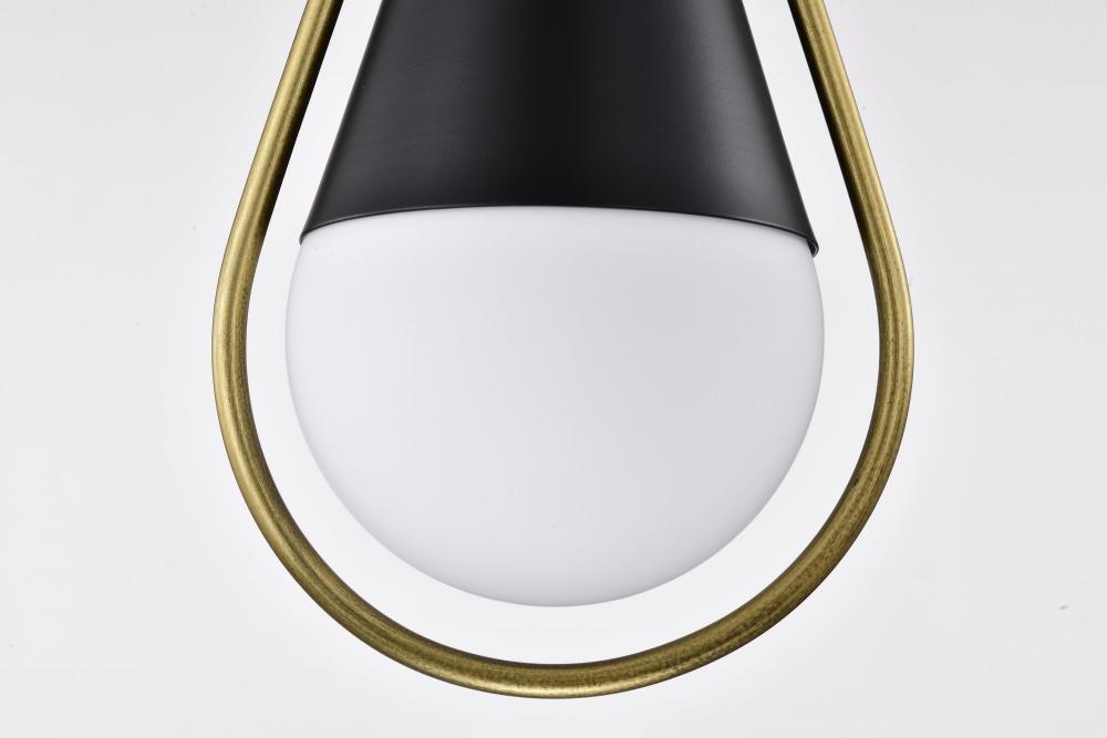 A modern collection with a twist, the Admiral 60-7903 medium pendant features a dual finish, unique design, and a fashionable statement for home luminaires. A suspended tear-dropped shape is comprised of matte black with natural brass elements encompassing
