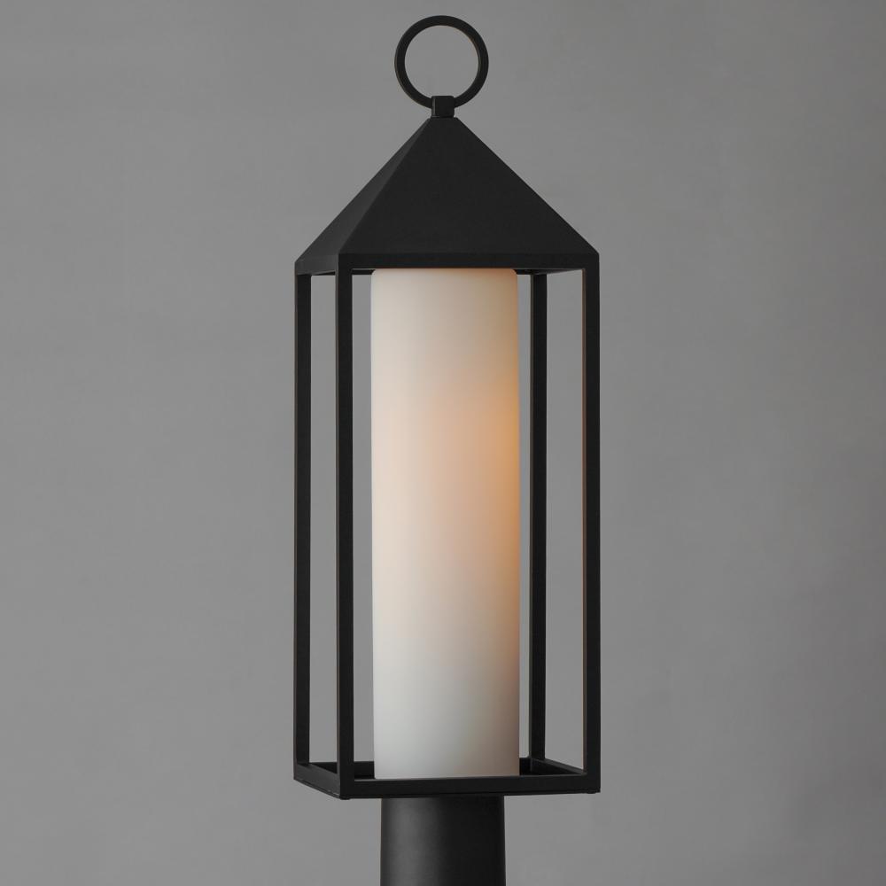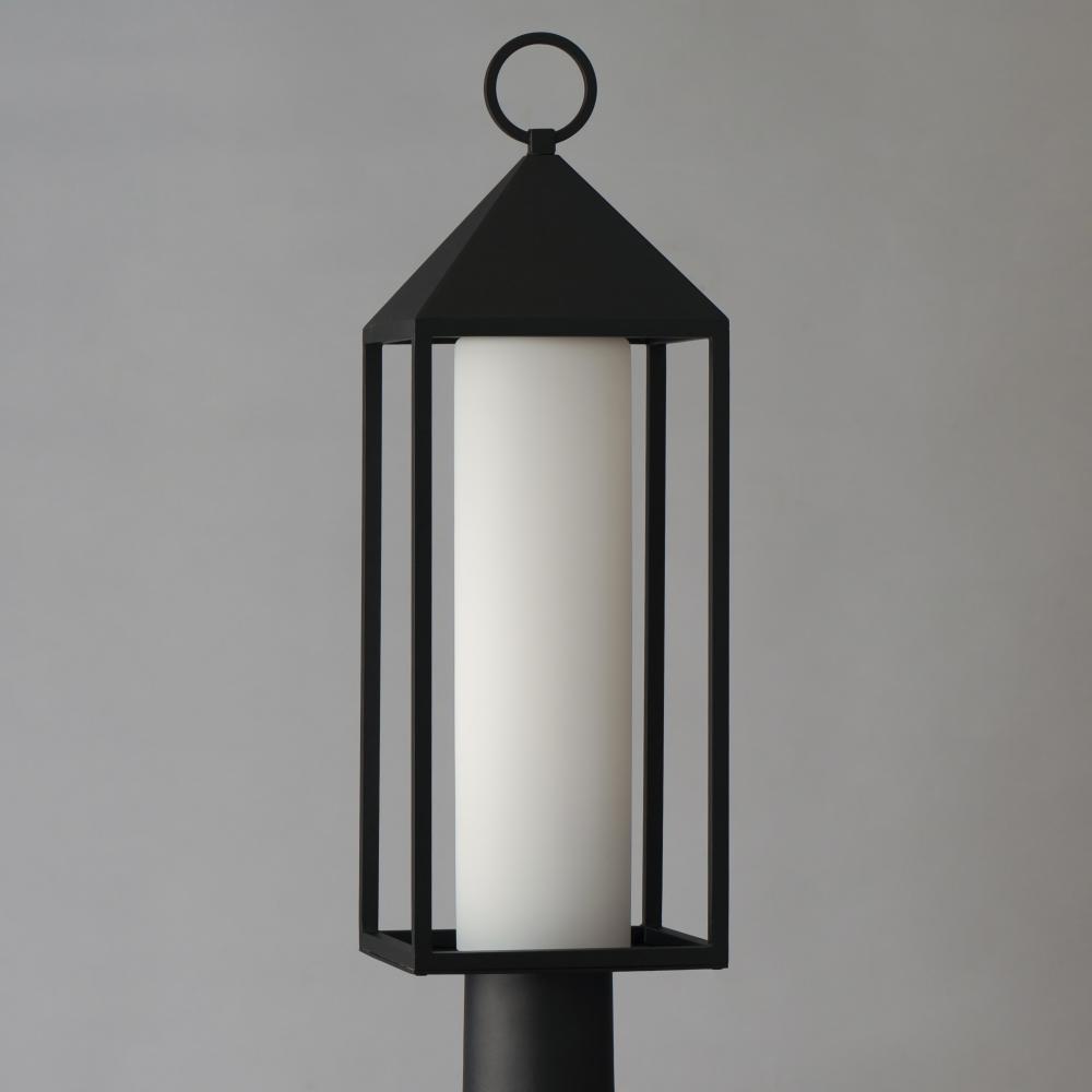 A refreshing take on classic outdoor lanters, this collection features a pyramid capped top with Satin White glass hurricanes housed within. No additional panels of glass are used to frame the lantern, providing an attractive, low maintenance look for outd