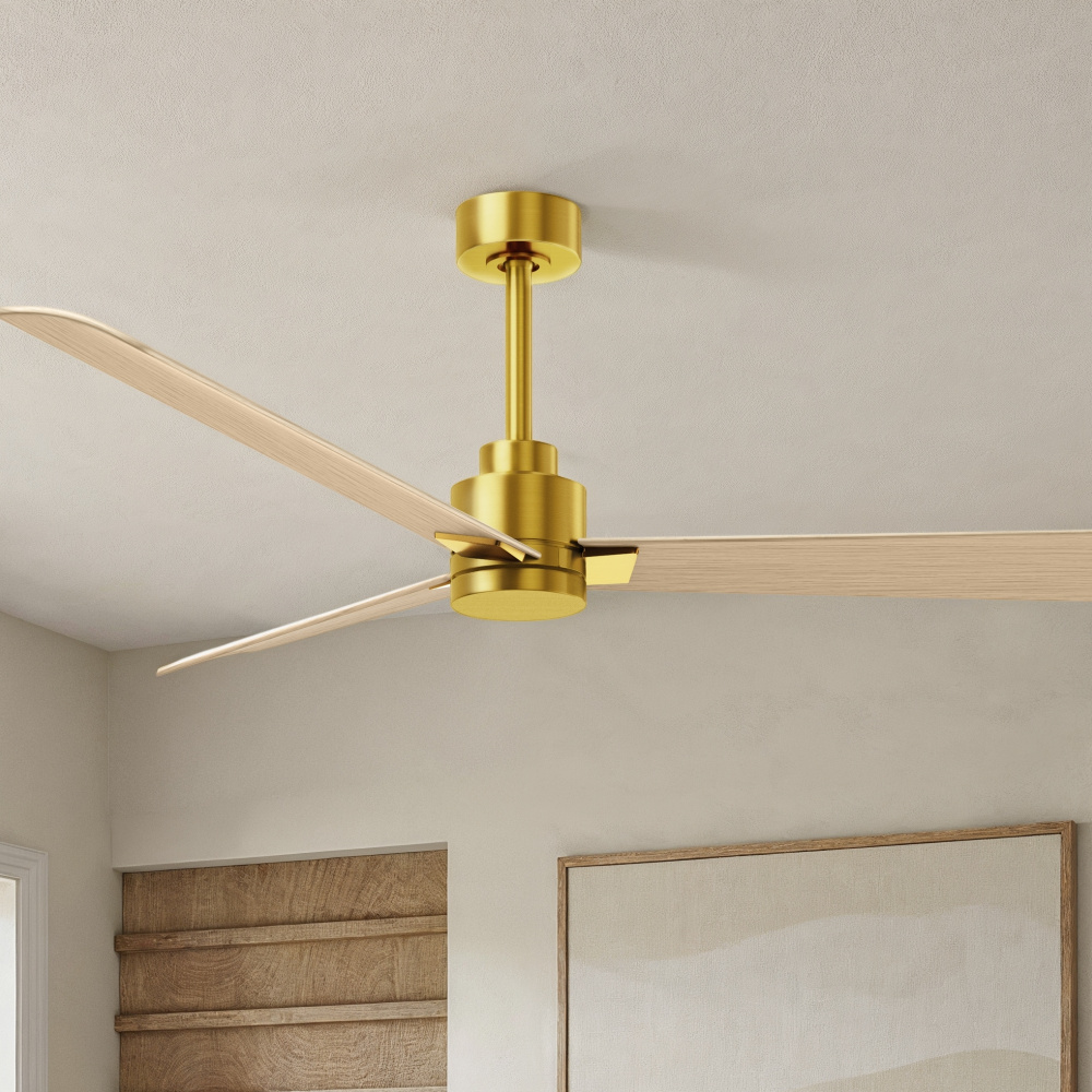 Matthews Fan Company AK-BRBR-LM-72 - Alessandra - 72" Three Blade Transitional Ceiling Fan - Brushed Brass Finish - Light Maple Blade