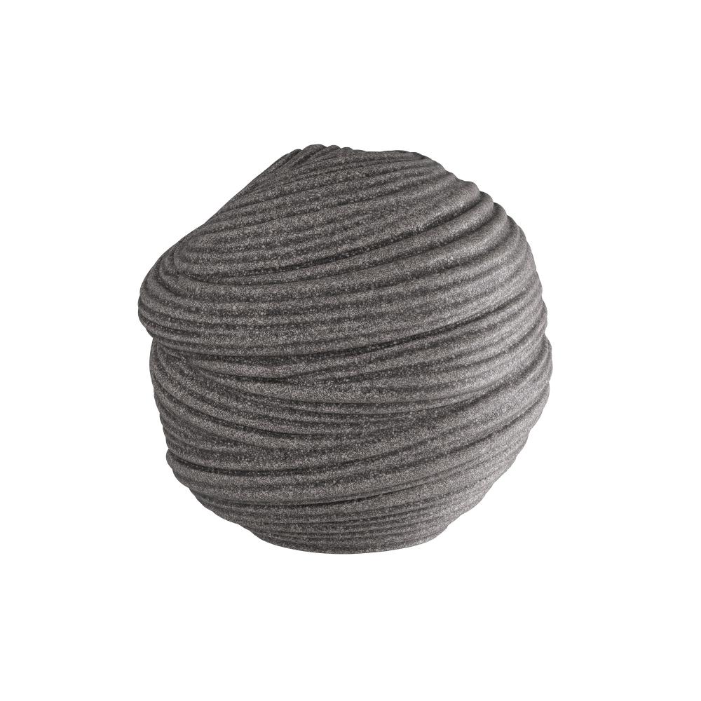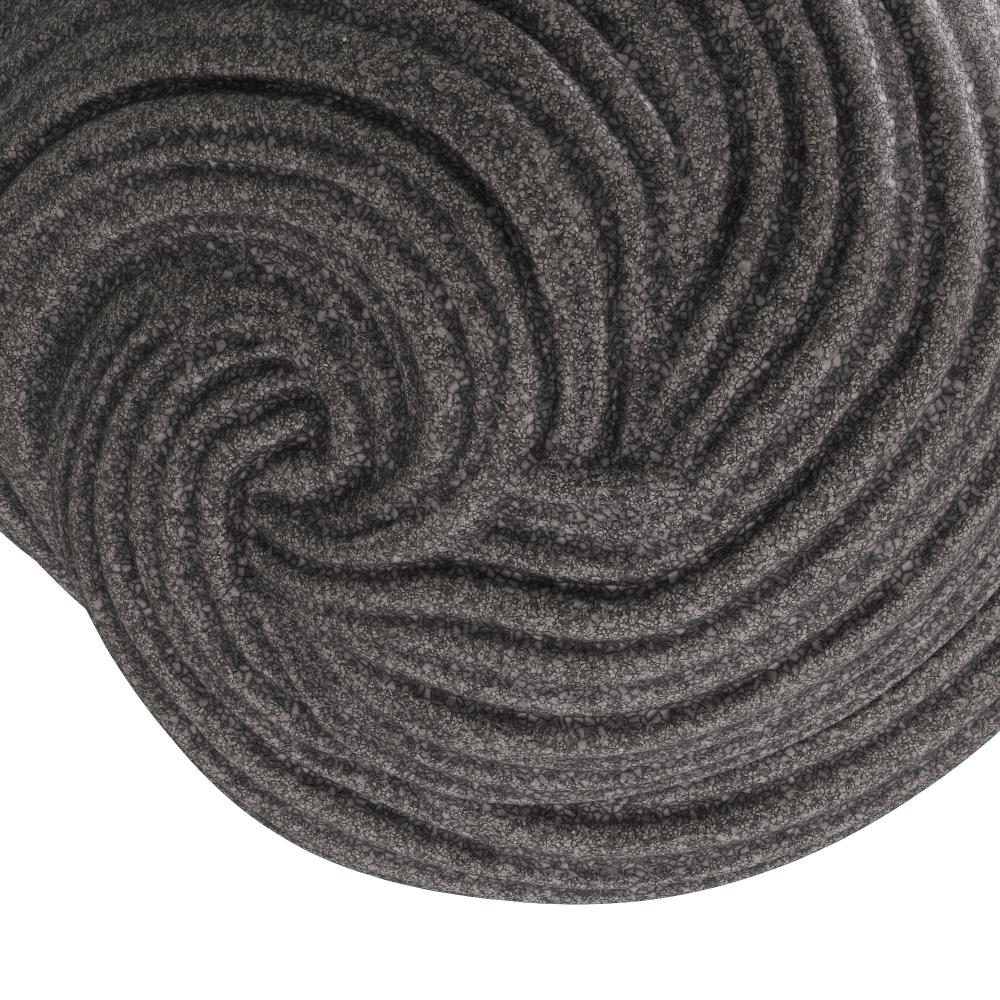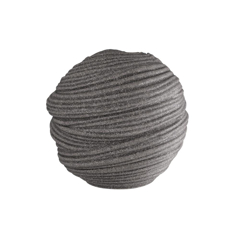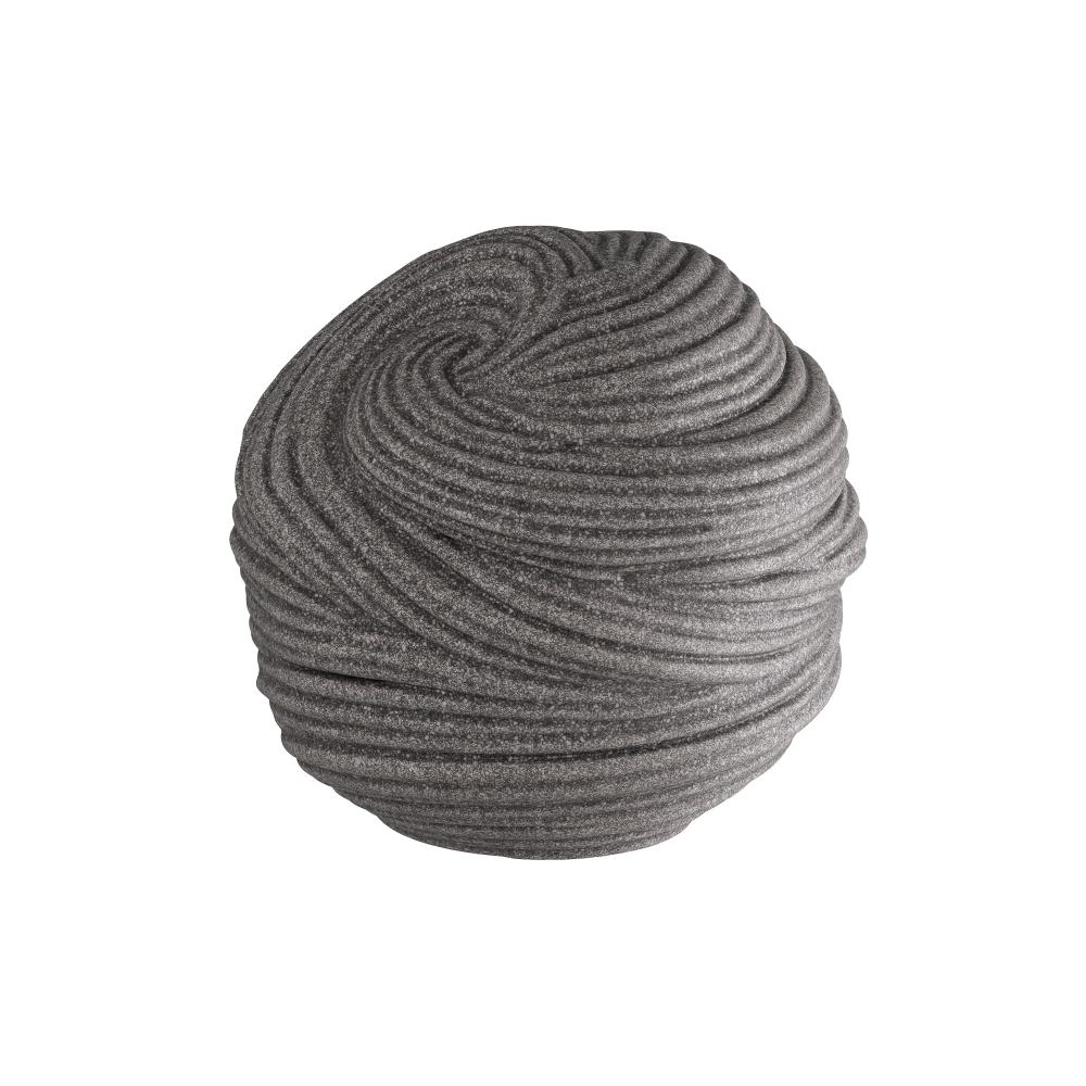 An orb of carved charcoal ricestone composite is grooved and patterned to delight the eye. Textural and soothing, its swirled surface provides a sense of grounding to the eye. Finish will vary.