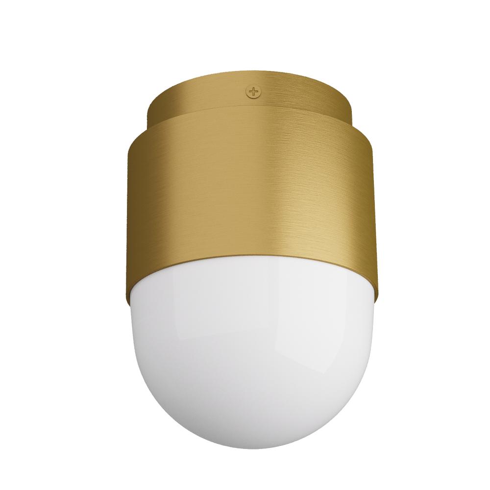 With its simple stepped design and turned metal construction, the Allentown adds a touch of sophisticated Industrial design to your favorite room. Its sturdy iron construction is elevated with an elegant finish of antiqued brass, centered with a cylinder of opal glass. Damp-rated, although limited covered outdoor conditions may affect finish.