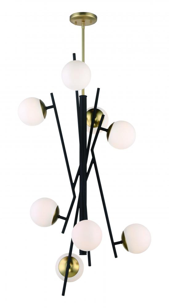 8 Light Foyer in Weathered Coal Finish with Autumn Gold Accents and Etched Opal Glass