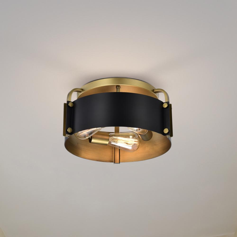 The Altos 60-7840 medium semi-flush mount adds a touch of drama and intrigue to any space. The natural brass accents provide a warmth to the industrial-inspired construction, which is finished in a velvety, matte black. The meticulous attention to detail i