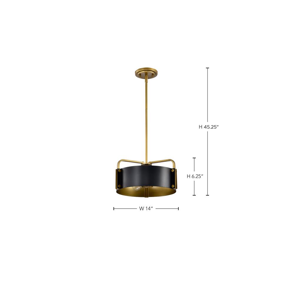 The Altos 60-7842 small pendant adds a touch of drama and intrigue to any space. The natural brass accents provide a warmth to the industrial-inspired construction, which is finished in a velvety, matte black. The meticulous attention to detail in the lase