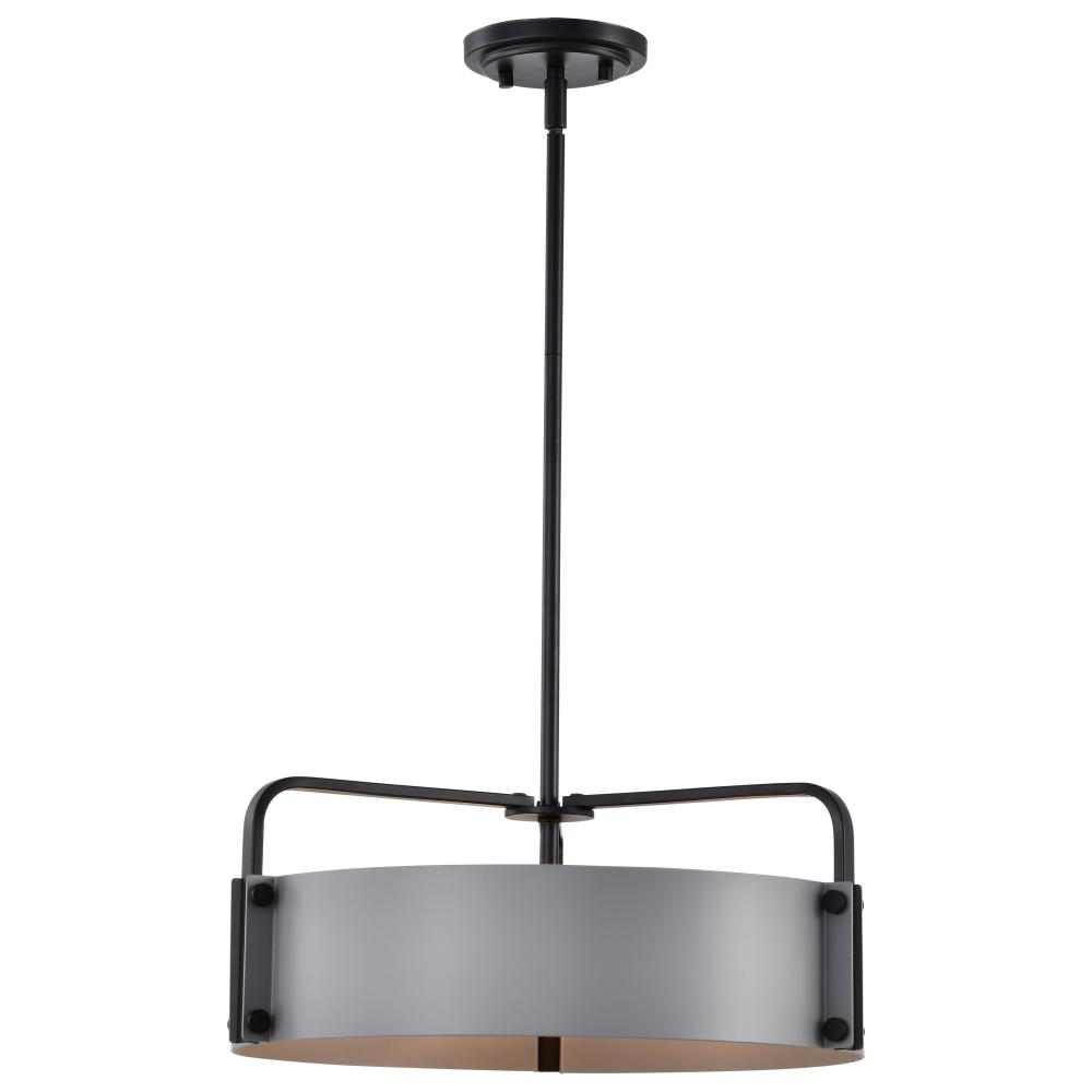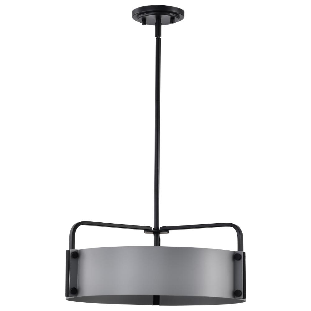 The Altos Collection adds a touch of drama and intrigue to any space. The gray accents provide a coolness to the industrial-inspired construction, which is finished in a velvety, matte black. The meticulous attention to detail in the laser-cut shade and ma