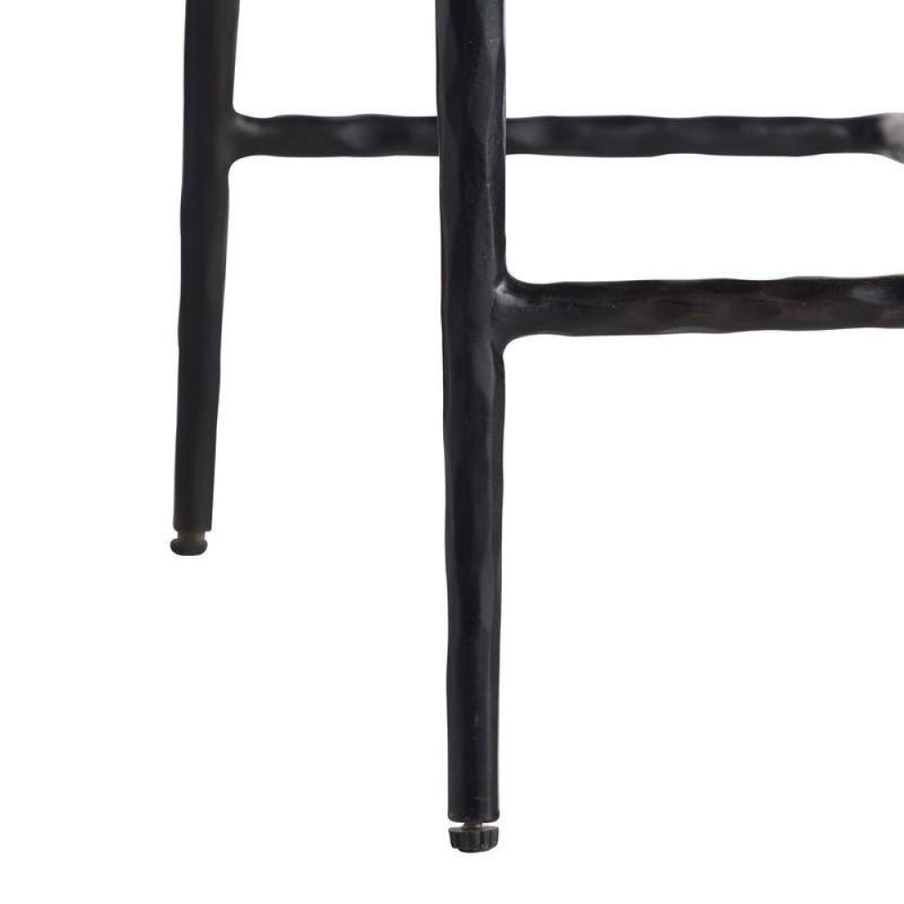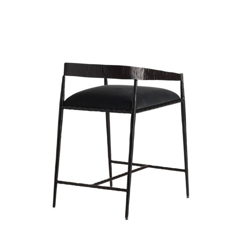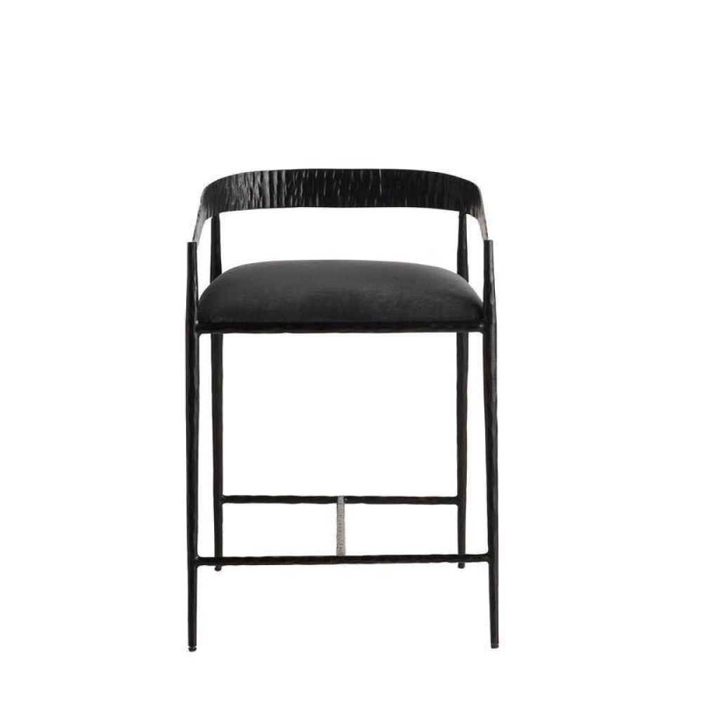 Sharp angles and a raw curvature define this stool’s bold aesthetic. Natural iron is hammered by hand to create rich impressions along the shallow back, while the hand-forged legs yield more delicate details. The tight seat is covered in our performance velvet in midnight grey, elevating the façade while assuring it is as durable as it is stylish. Finish will vary.