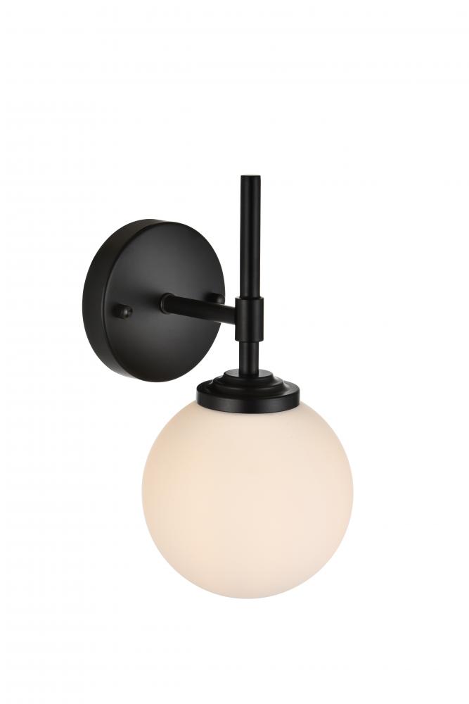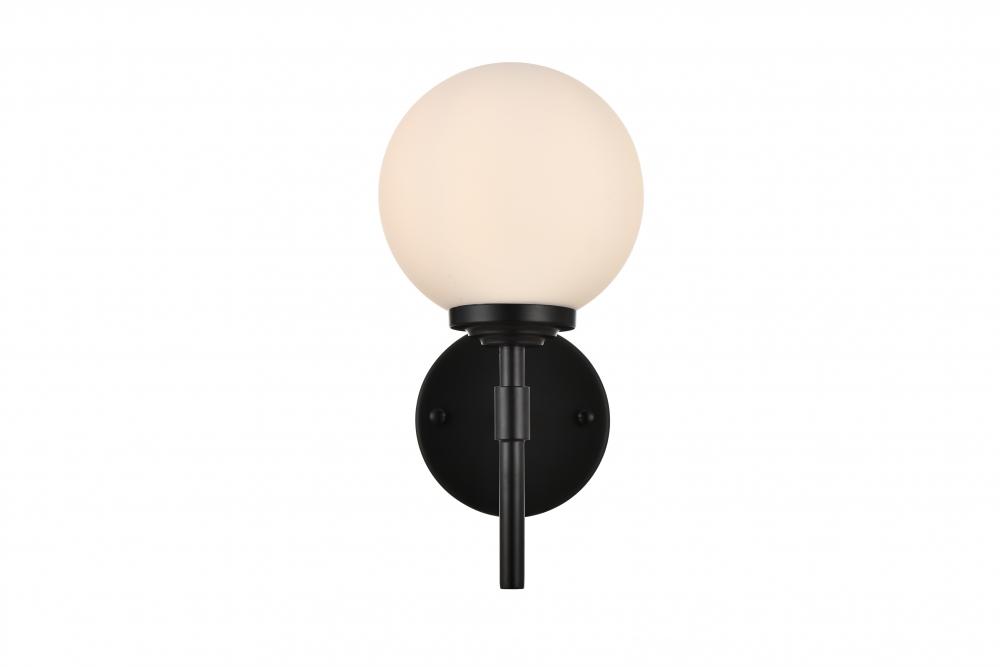 frosted glass globe shade filter light from the straight metal armed sconce