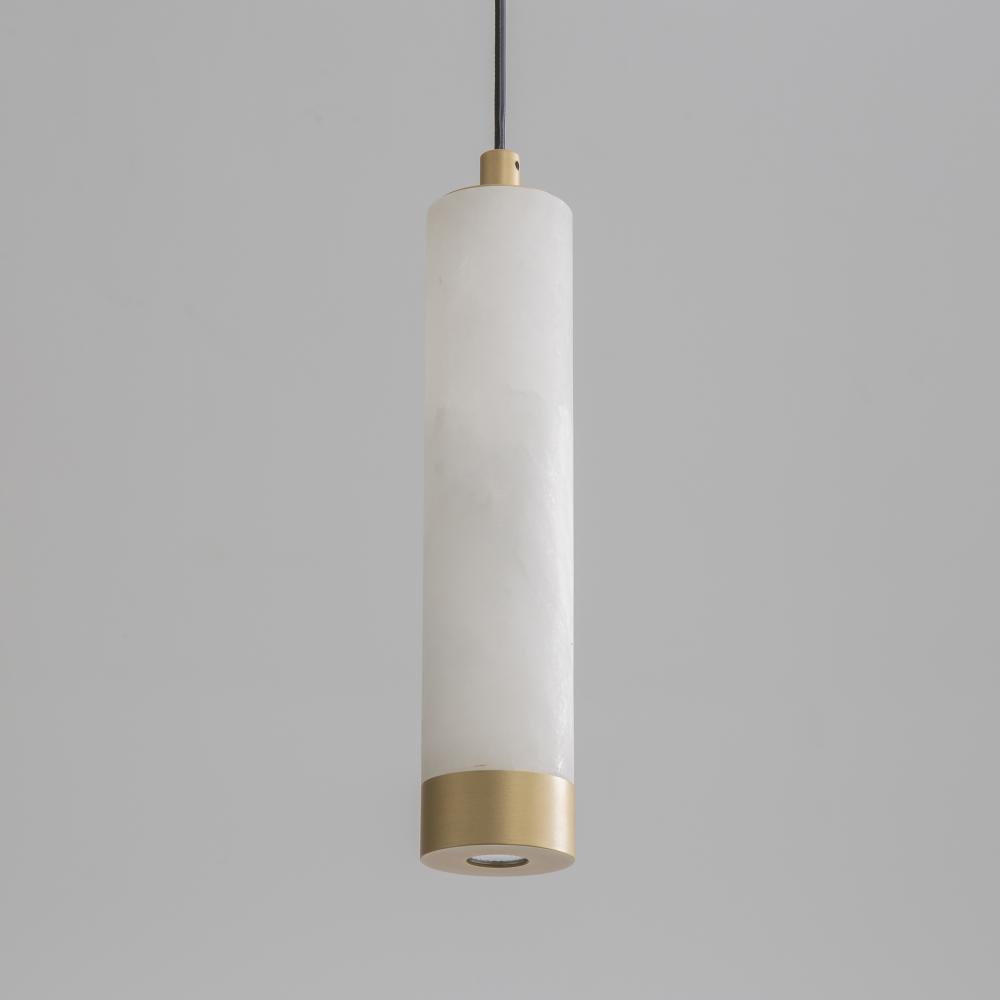 Featuring carved Spanish Alabaster shades in sleek cylindrical forms, the Aragon collection conceals high-powered LED light sources within, providing both beauty and functionality. The natural alabaster is elegantly complemented by plated Gold accents, add