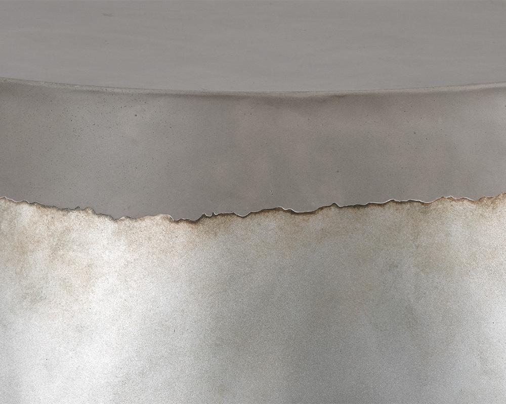 A beautiful coffee table with a stunning pop of metallic. The Aries with silver foil accents that pair perfectly with the industrial grey concrete. A versatile and functional piece suitable for indoor and covered outdoor spaces. Crafted from a natural concrete mix, each piece will look different, with variations of grey hues that will enhance over time.