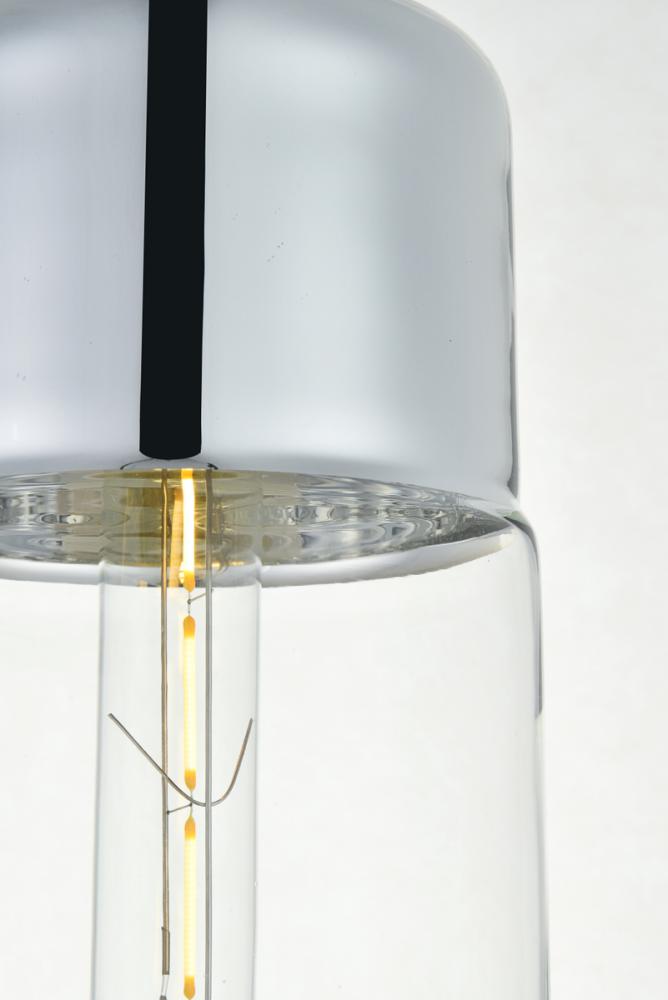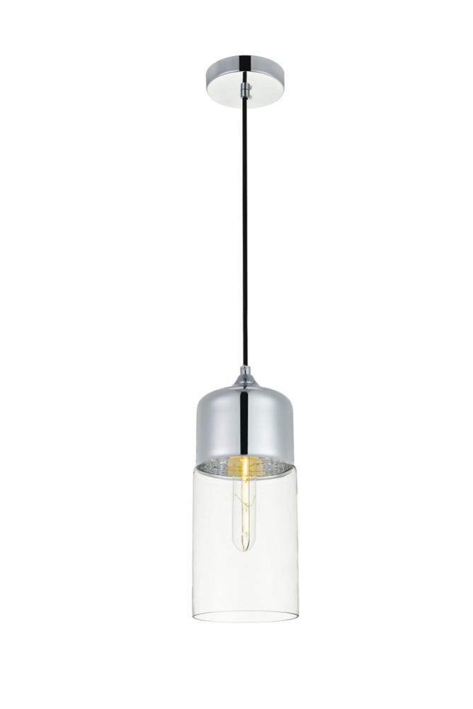 The perfect marriage of vintage charm and modern refinement, Ashwell pendant lamps blend well with décor from both Old World and New. A rounded iron frame in a chrome finish comes with adjustable black hanging cord. The narrow cylindrical clear glass shade envelopes an E26 tubular filament bulb (not included) to complete the overall look. Ideal for a breakfast nook, kitchen, office, or studio.