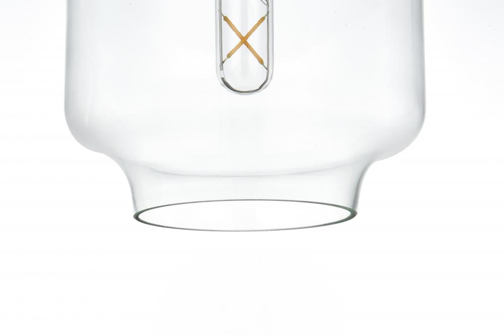 Features a clear glass shade, offering bright, unobstructed light and a clean, modern look.