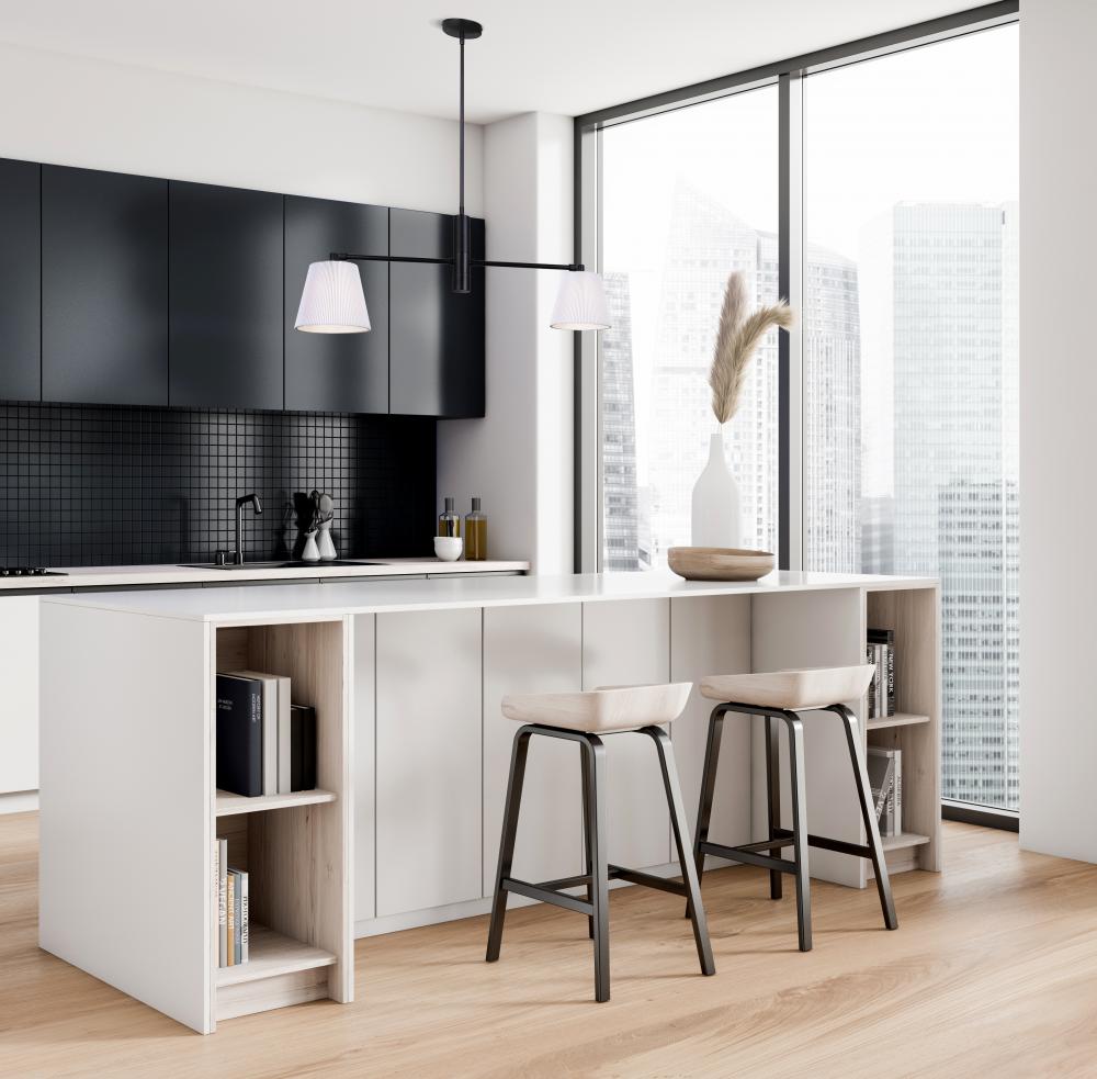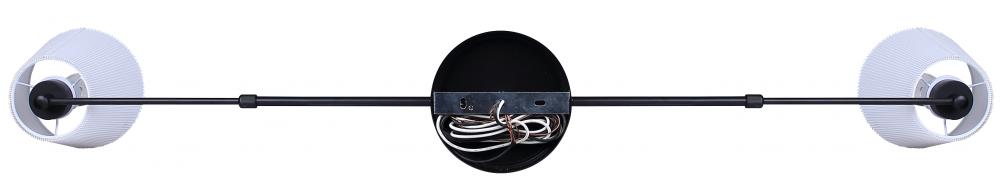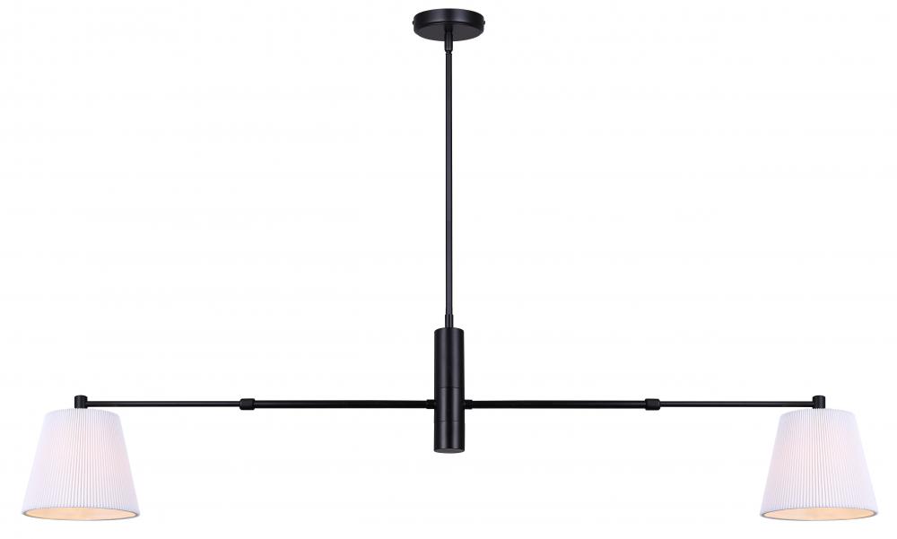 ASPEN, IPL1201A02BK, 2 Lt Rod Pendant, White Ribbed Fabric Shade, 60W Type A, 35.25 - 56.25inch W x 15.5 - 63.5inch H x 7inch D