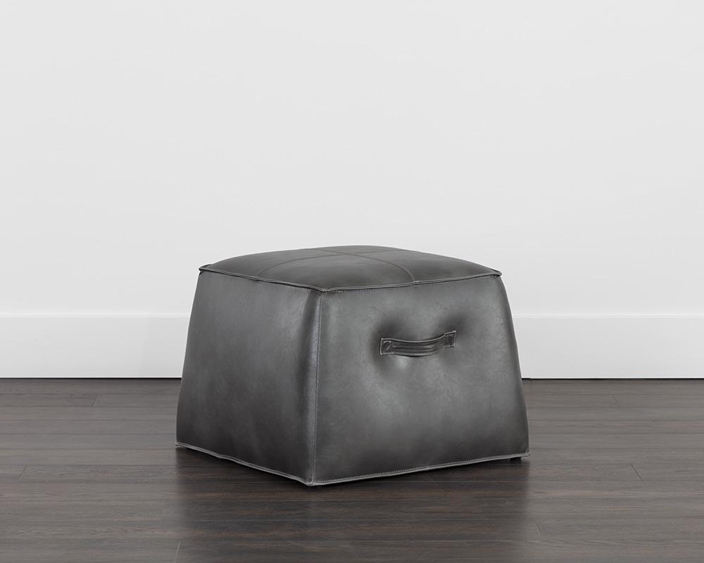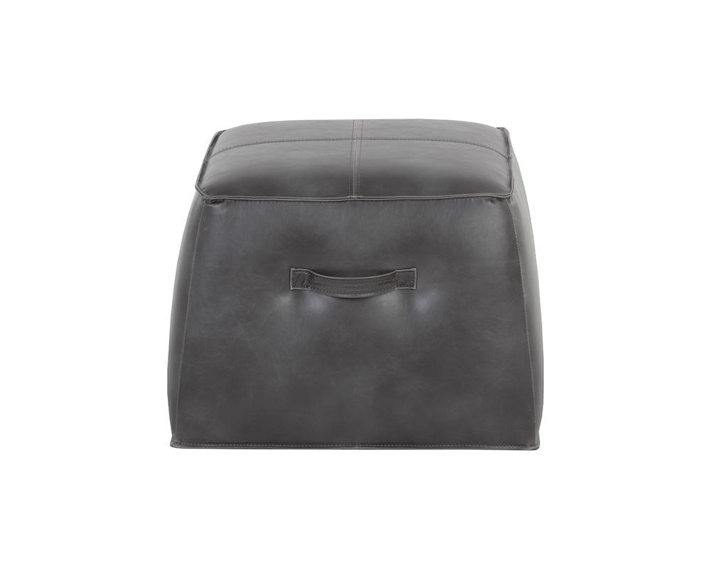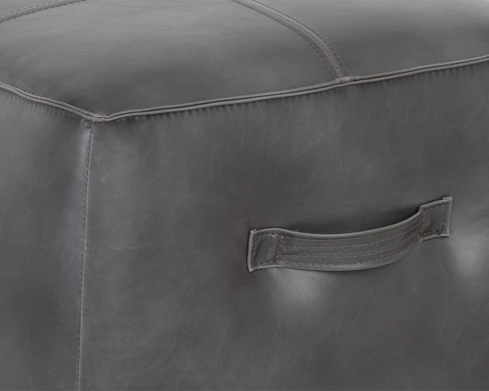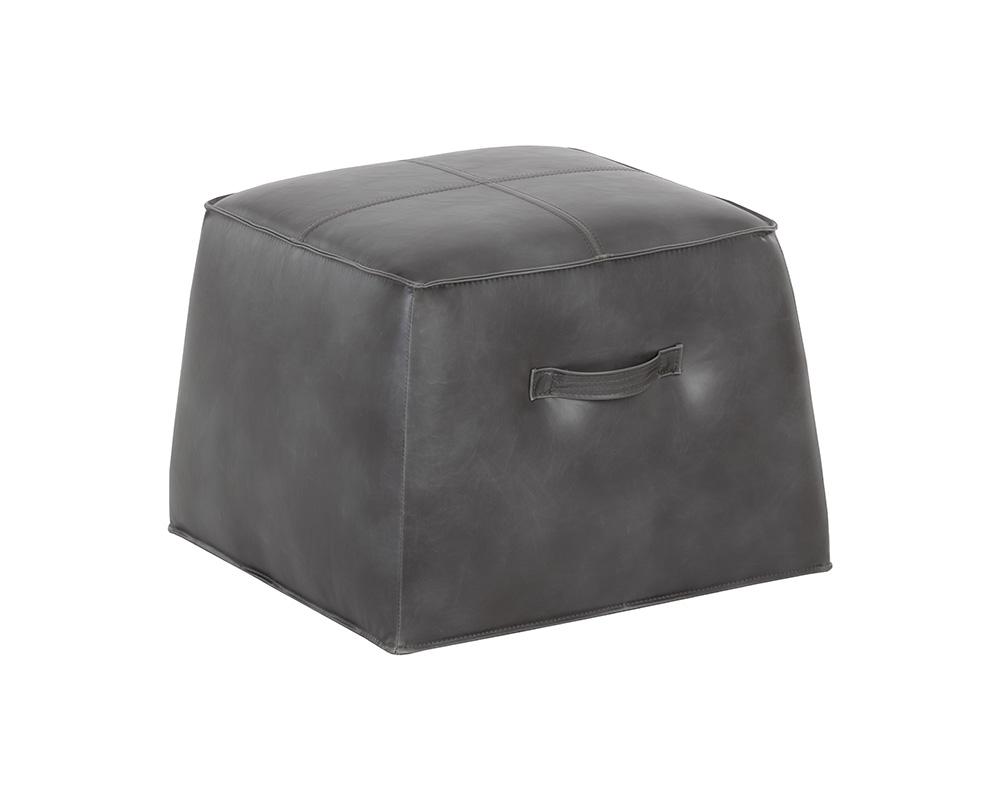 A handsome cubed ottoman from our 5West collection stocked in a vintage-look havana dark brown, tobacco tan faux leather and overcast grey faux leather. Features a decorative handle and exposed stitching for added function and detail. Suitable for residential and commercial environments. Handle With Care: This design has been crafted with faux leather. Faux leather is manufactured to reflect the natural characteristics of leather; as such, colour variations, markings wrinkles, grooves, and light scratches are appreciated characteristics. No two pieces will be alike.