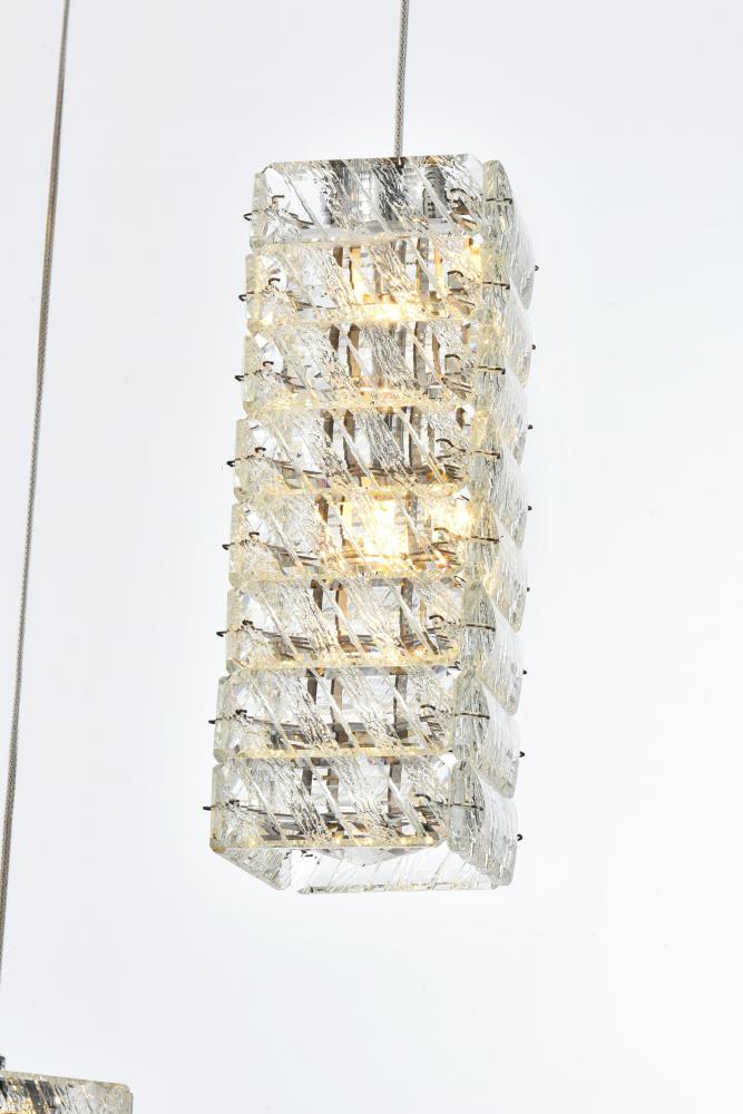 Features a unique rectangular shape with clear crystal stacks that resemble ice, creating a visually stunning and unique lighting fixture.