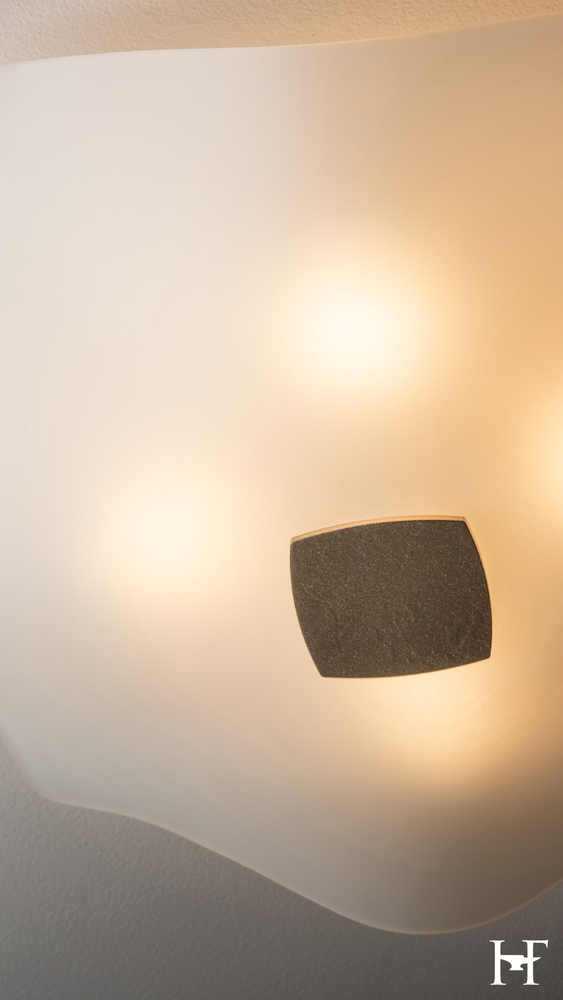 Elegant in its simplicity, the sophisticated Astra Semi-Flush features gently slumped art glass that is held in place by a handcrafted, forged medallion. A beautiful addition to any space.
