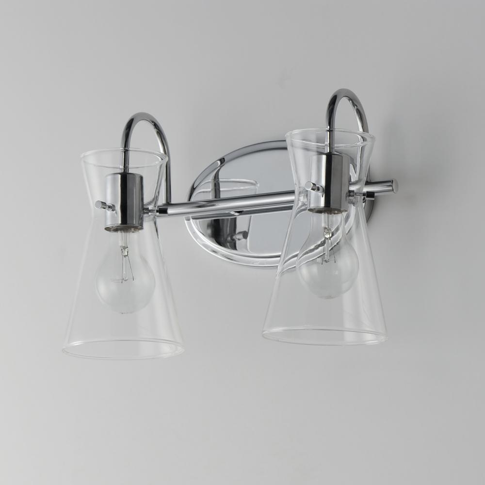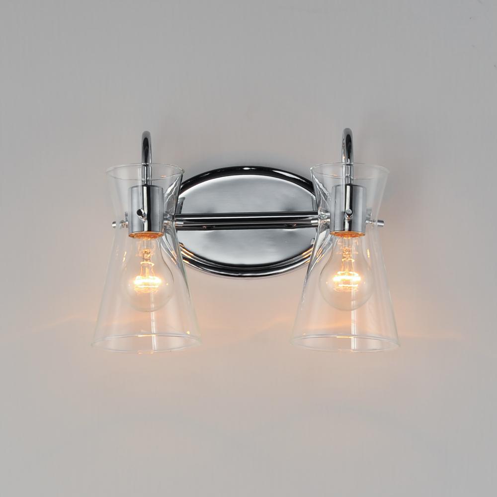 Suspended by three pin connections, the sharp silhouette of Ava's angular glass provides a designer look to enhance your bathroom design. Using Clear glass and a variety of complementary metal finishes the sconces are available in Black, Polished Chrom