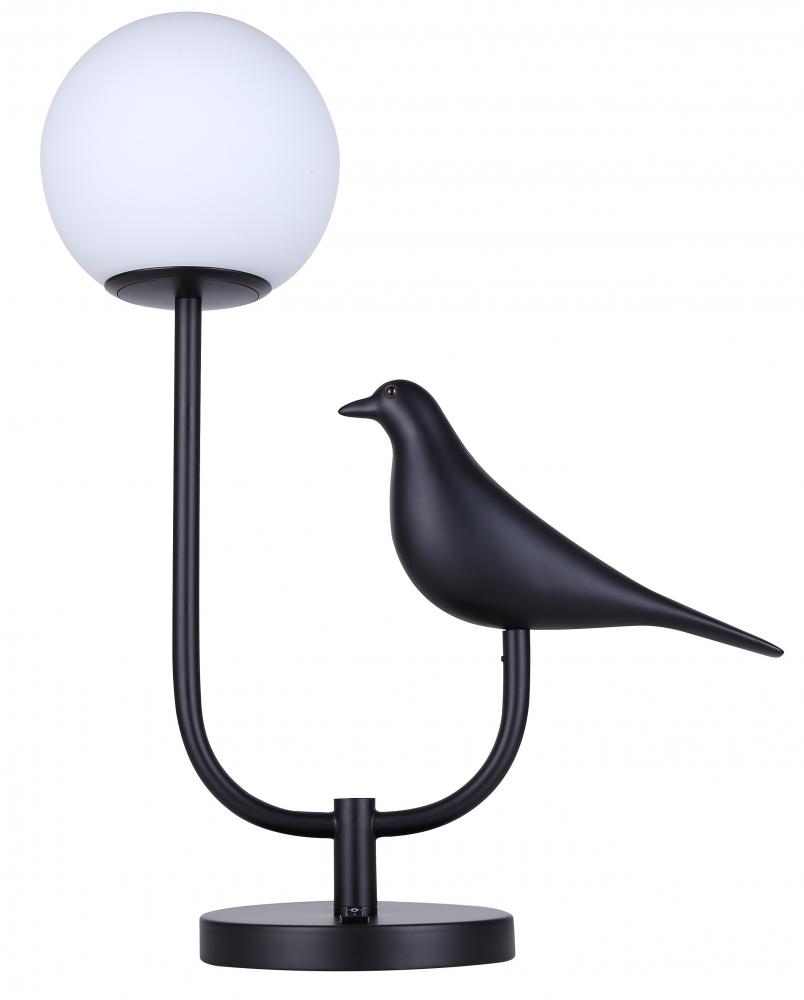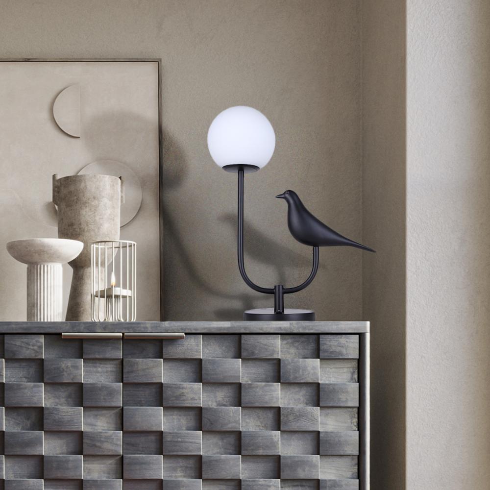 Distinctive Art-Deco Design: Embrace modern elegance with our unique table lamp featuring a matte black finish and a U-shaped base adorned with an art-deco bird motif, adding a touch of sophisticated charm to your decor.
