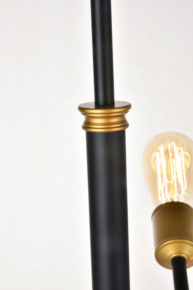 Modern sophistication with a jaunty presentation. This Axel pendant features three adjustable crossing arms mounted on a central rod to direct light in any direction. A total of six light sources (bulbs not included) in a compact design offers functional beauty in smaller spaces. The absence of shades says industrial; the design says penthouse. The smooth steel hardware is finished in austere black with soft bronze sockets and canopy, adding a bit of tradition. Stylish and cutting-edge without being too eccentric.