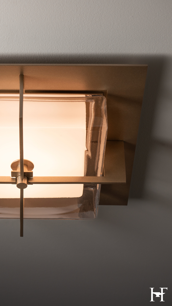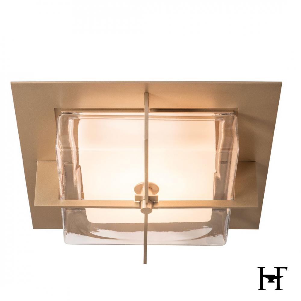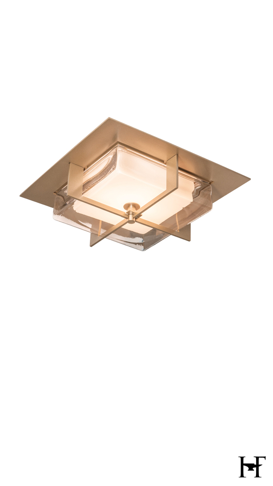Balance, elegance, simplicity. A contemporary complement to any space, the Axis Flush Mount’s bisecting metal arms at right angles nest it's beautiful double glass shade within. An inner frosted glass with a thick clear outer glass, and a metal top plate complete the sophisticated look. Coordinates nicely with other pieces in the Axis Collection.