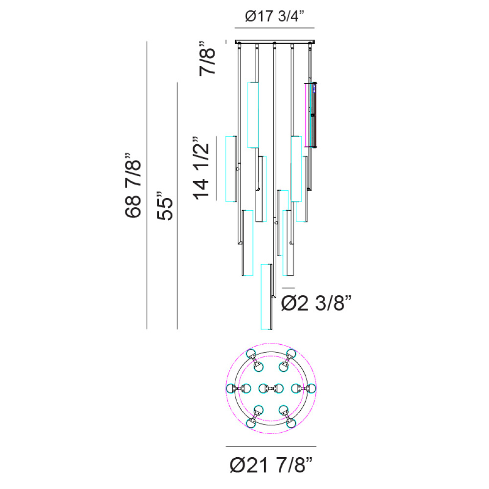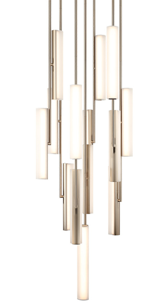 Axis Illuminate your space with sculptural elegance. The Axis is a modern multi-pendant chandelier that transforms lighting into art. Sleek cylindrical elements are suspended at varying angles, creating a dynamic architectural presence. Each tube emits a softly diffused warm glow that enhances any environment. The collection is offered in Champagne Gold with white frosted glass or Matte Black with smoke frosted glass, allowing you to choose the aesthetic that best complements your space. Features a 5CCT switch on the LED module to adjust the 5 selectable colour temperature