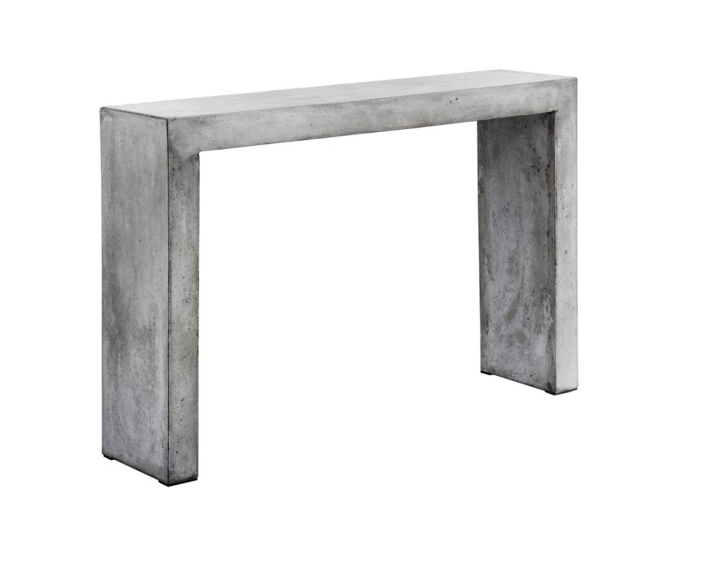 This console makes a bold statement with its clean lines and concrete construction in grey and black. Ideal for small spaces with its narrow depth. Crafted from a natural concrete mix, each piece will look different, with variations of grey hues that will enhance over time. Suitable for indoor and covered outdoor spaces.